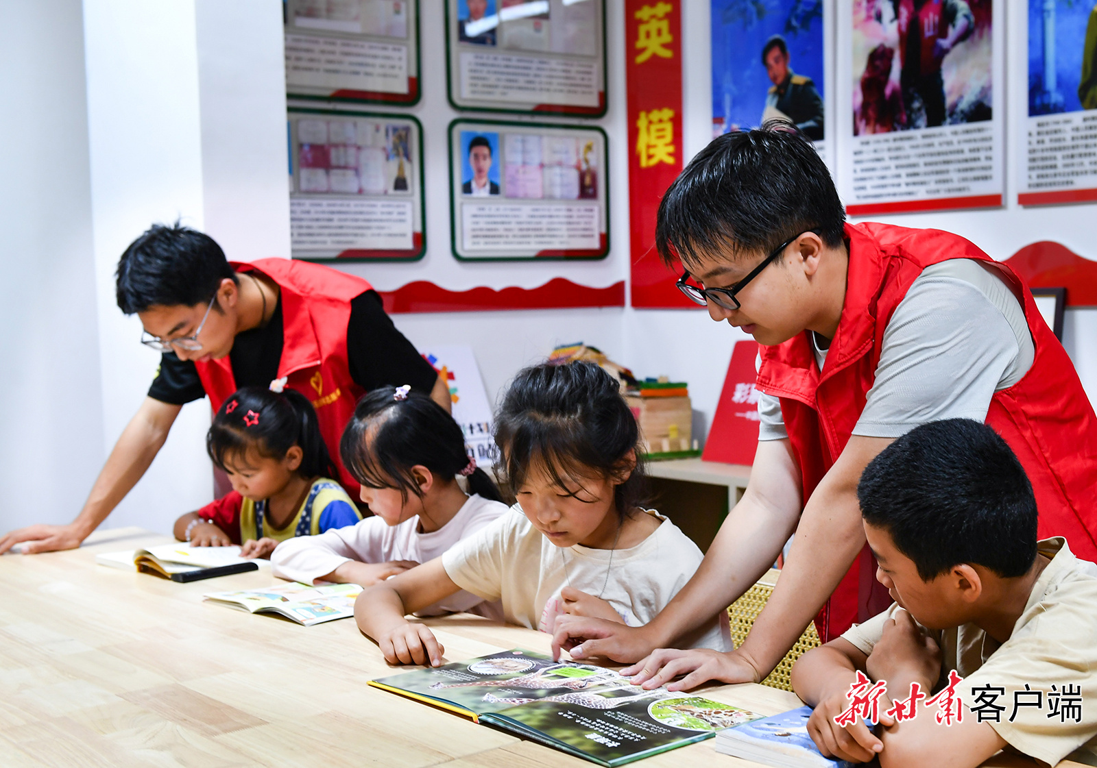 志愿者老师陪孩子们读书。