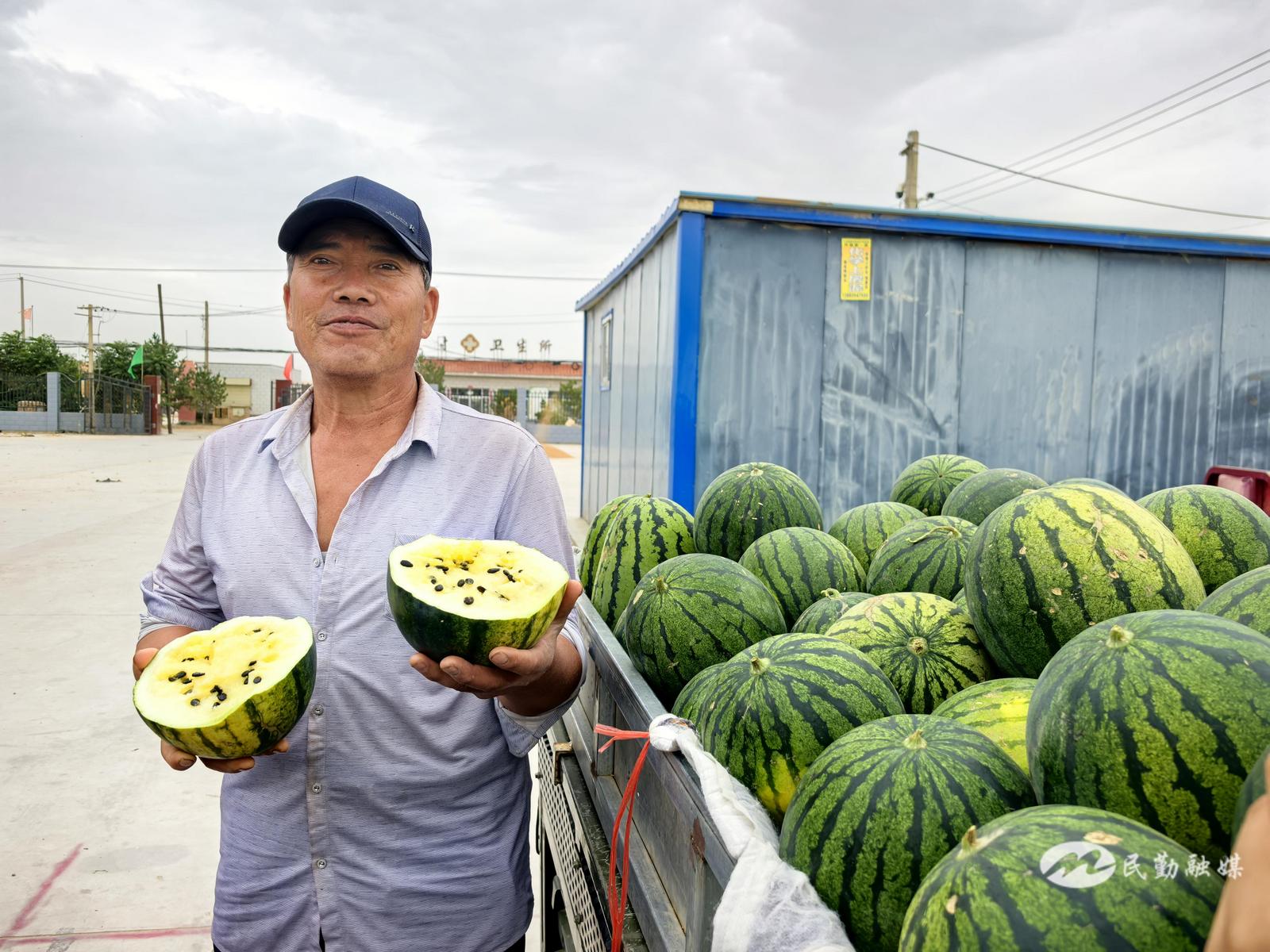 “民勤富硒瓜,不甜不要钱”……走进城近村西瓜交易市场,瓜农们热情的吆喝声此起彼伏。数十个摊位前,满载西瓜的三轮车整齐排列,客商们熟练地轻叩瓜身,伴随着清脆的响声,金黄的瓜瓤瞬间绽开,咬上一口,清甜的汁水在唇齿间迸发,沙瓤的口感让人回味无穷。