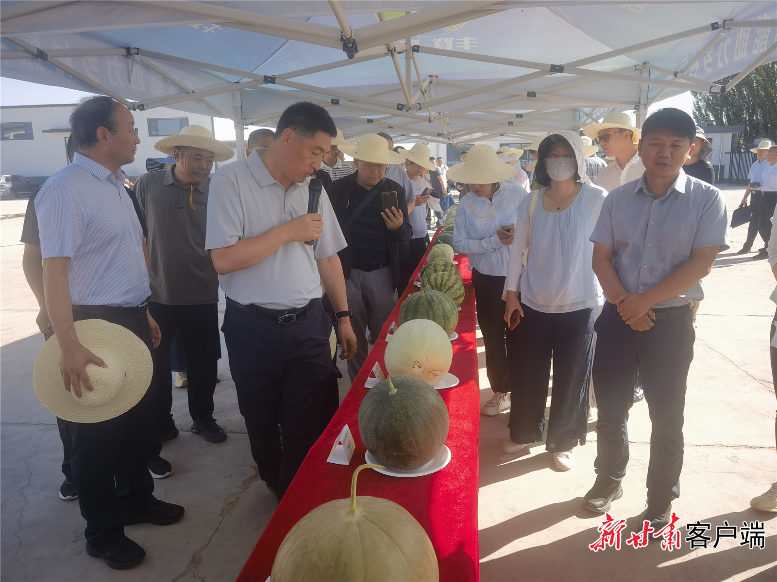新甘肃客户端张掖7月25日讯(新甘肃·甘肃日报记者 冯宝强)丝路绵延,瓜香飘溢。今天,由中国农业科学院郑州果树研究所、甘肃省农业科学院与张掖市高台县联合主办的高台县西甜瓜产销对接会、优异种质资源展示共享暨科技开放周活动开幕。来自全国30余家科研机构的专家、企业代表百余人齐聚一堂,通过种质资源展示、实地观摩等活动,集中展现甘肃在西甜瓜种质资源创新领域的硬核成果。