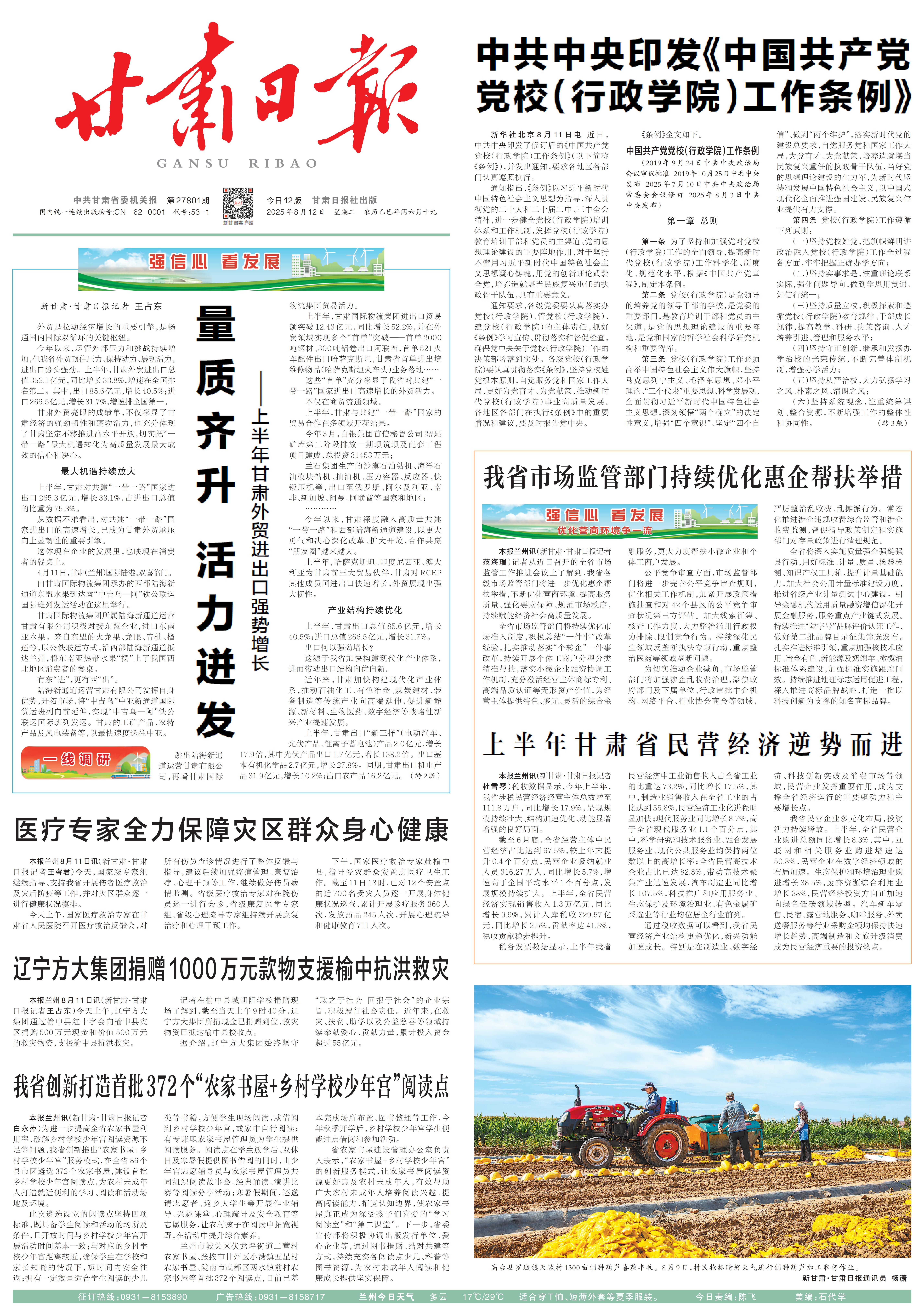 上半年,甘肃民营企业进出口保持了稳中有进的增长态势。兰州海关推出支持民营企业外贸高质量发展十条措施,从强化政策供给与精准帮扶、优化通关服务与效能提升、规范监管执法与权益保障上,助力企业开拓市场,为企业降本增效。