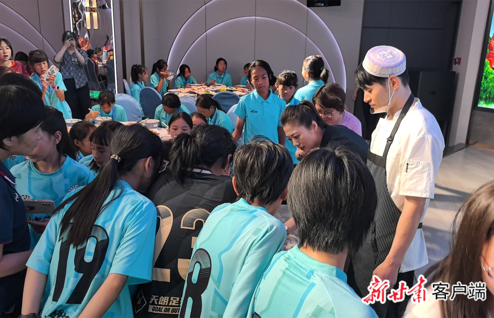 队员们参观兰州牛肉面的制作过程。