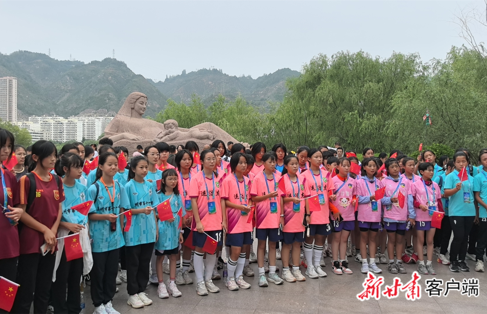 队员们在“黄河母亲”雕塑前合影。本文图片均由兰州市文旅局提供
