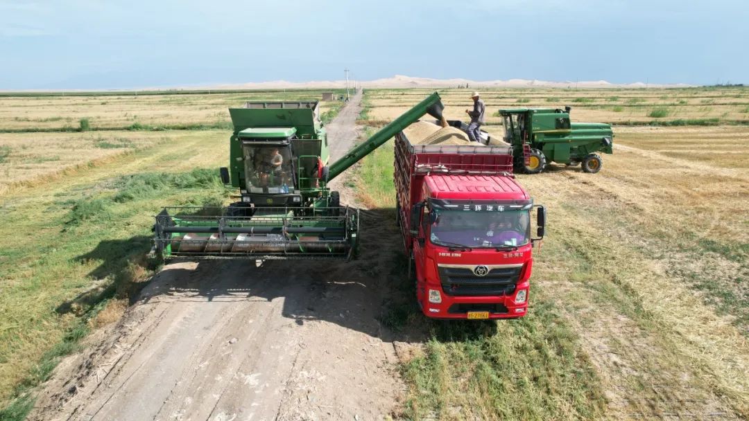 走进肃南县上井村小麦种植基地,颗粒饱满的麦穗低垂摇曳,汇成一片金色海洋。种植户们正驾驶着隆隆作响的收割机,在麦浪中高效穿梭。只见收割机前端“吞”入金黄的麦秸,后端均匀“吐”出粉碎的秸秆还田。伴随着机械的欢唱,金灿灿、圆鼓鼓的麦粒倾泻而下,瞬间装满等候在旁的运粮车。“今年全乡种植小麦1.2万余亩,长势喜人,丰收在望。”乡农业农村综合服务中心负责人介绍道,“为切实保障小麦产量与品质,我们全程强化农业科技支撑,大力推广病虫草害统防统治、小麦‘一喷三防’等关键增产提质技术,为端牢‘中国饭碗’贡献明花力量。”
