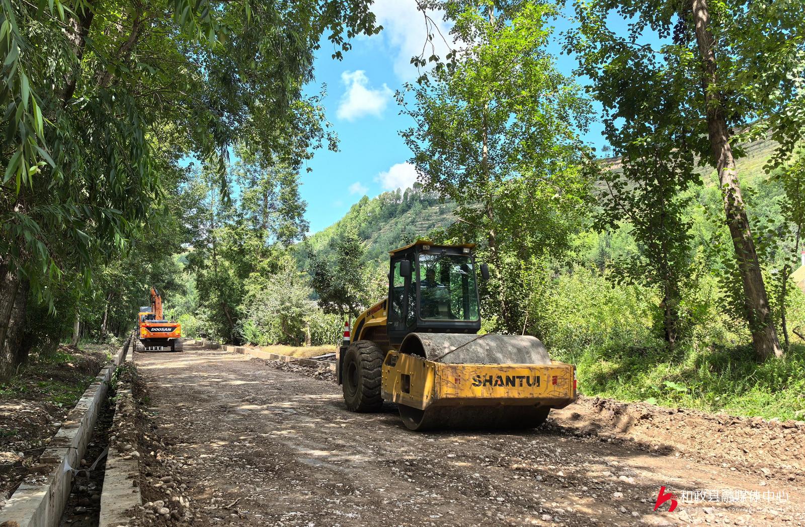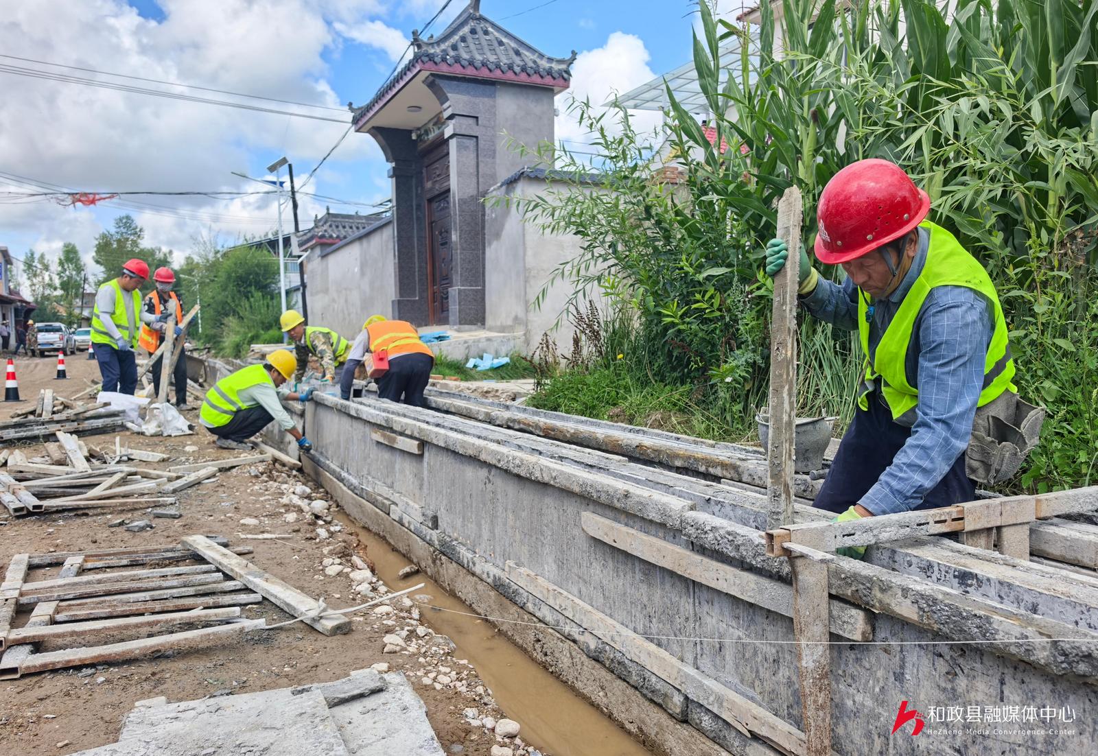 在城关镇三谷村项目施工现场,挖掘机、原料运输车往来穿梭,机械轰鸣声不绝于耳,工人们头戴安全帽,各司其职,在道路边沟支模、灌浆,道路改造提升工程正全力冲刺,呈现出一派热火朝天的建设景象。