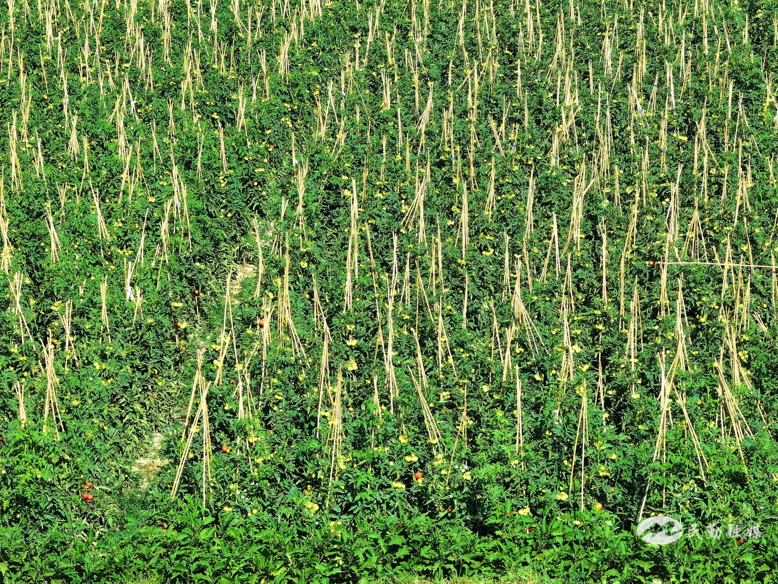 在东一村露地西红柿种植基地,整齐排列的藤蔓绿意盎然,红彤彤的西红柿挂满秧藤。农户们穿梭其中,熟练地采摘、分拣、装筐,运输车辆往来穿梭,田间地头一派热火朝天的丰收图景。