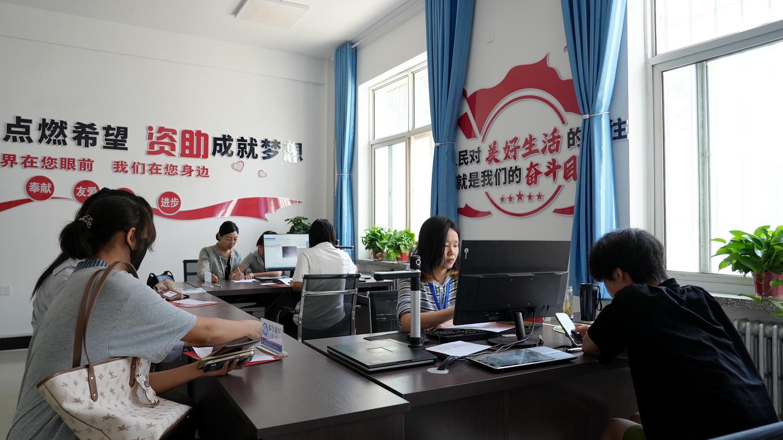 8月18日,记者在永靖县生源地信用助学贷款办理大厅看到,前来办理业务的学生和家长有序排队办理。工作人员认真核对学生提交的贷款材料,并细致地在系统中操作贷款申请。通过“网上申报、窗口审验、系统录入、合同签订”的高效“一站式”办理流程,许多家庭顺利完成了贷款申请。