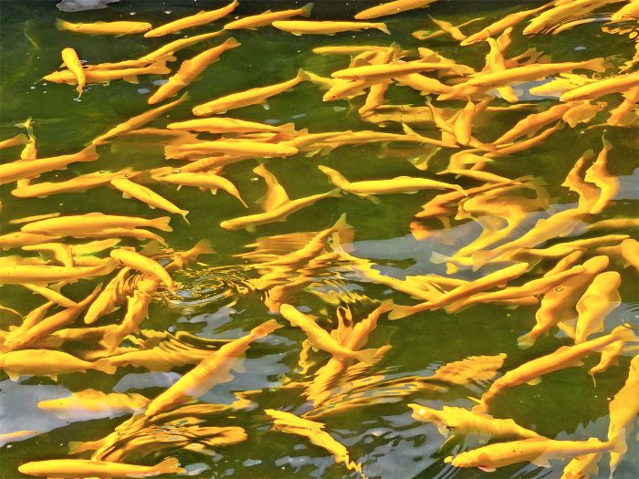 “每一滴水都来自高山清泉,鱼儿就像在‘天然氧吧’里生长。”养殖基地负责人梁城祥说,基地采用仿生态养殖模式,全程不使用饲料添加剂,从源头保证了鱼的品质。
