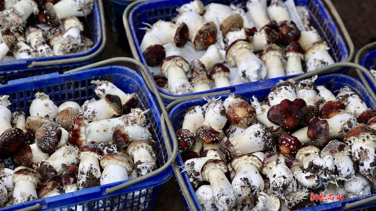 “大家摘的时候轻一点,赤松茸的菌盖嫩,碰坏了就卖不上价了!”清晨的小关乡食用菌种植基地,负责人白林虎正叮嘱着务工的村民。