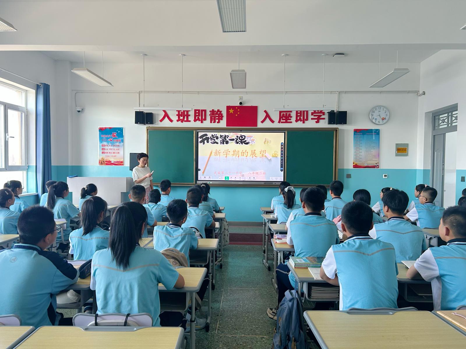 清晨,武威第二十一中学全体师生齐聚操场,举行了庄严的新学期第一次升旗仪式。在随后的“开学第一课”中,各班班主任围绕交通安全、校园安全、防欺凌、防溺水等关键主题,通过多媒体演示、真实案例剖析、互动问答等多种形式,深入浅出地传授给学生,引导大家深刻认识到安全的重要性,切实增强了学生的自我保护意识和能力。课堂上,同学们积极参与互动,踊跃分享自己身边的安全事例以及对安全问题的理解。