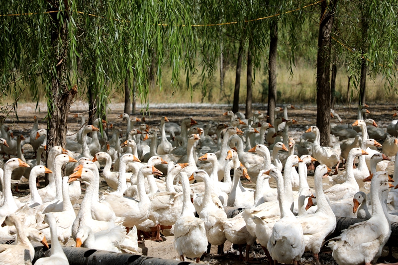8月21日,在临泽县鸭暖镇小鸭村养殖基地,一片绿意盎然的林地中,成群的大白鹅在林间悠闲觅食,或追逐嬉戏,此起彼伏的鹅鸣声奏响了乡村振兴的“致富曲”。