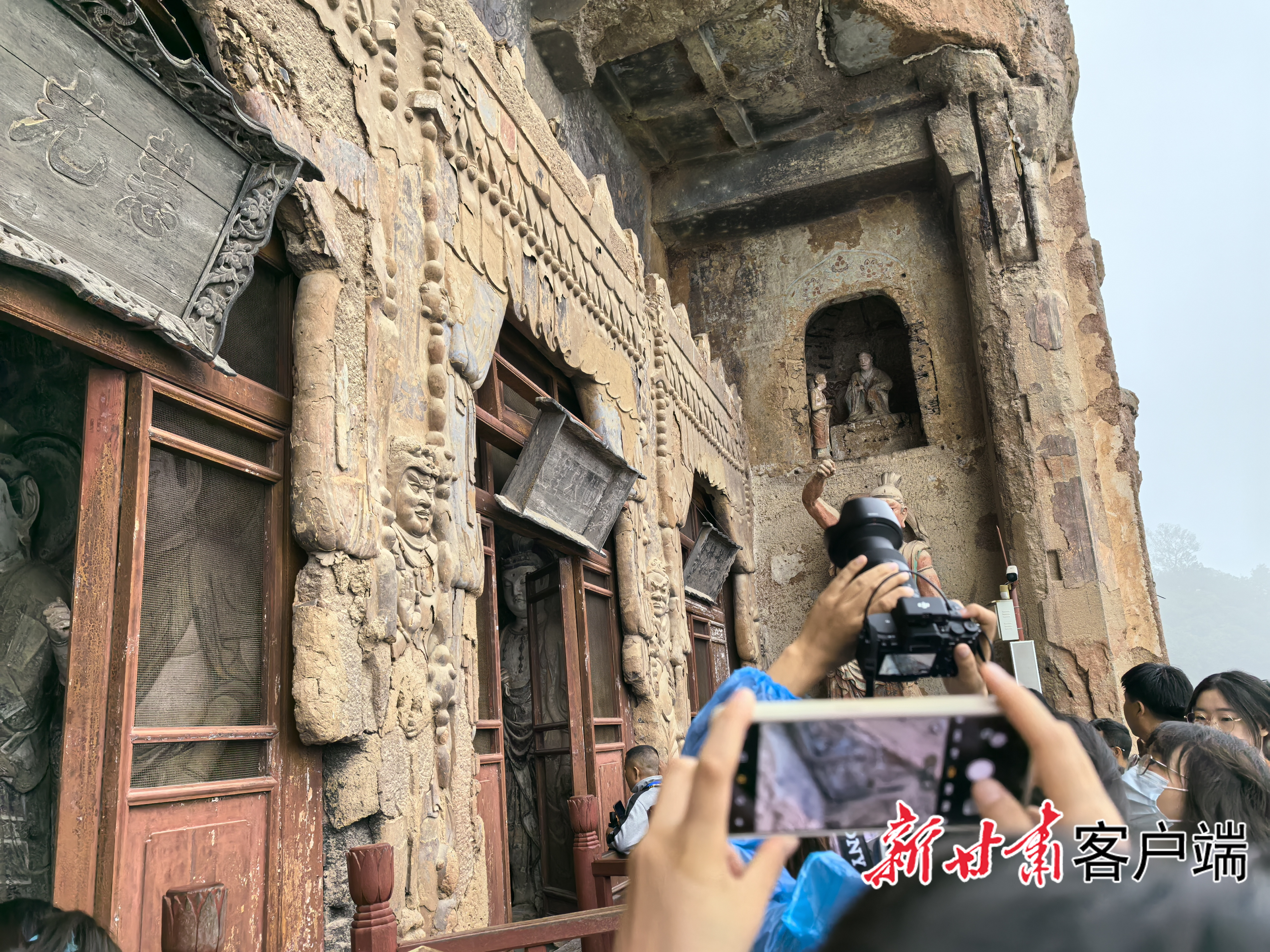 麦积山石窟游客众多。(图片均由新甘肃·甘肃日报记者 白永萍 摄)