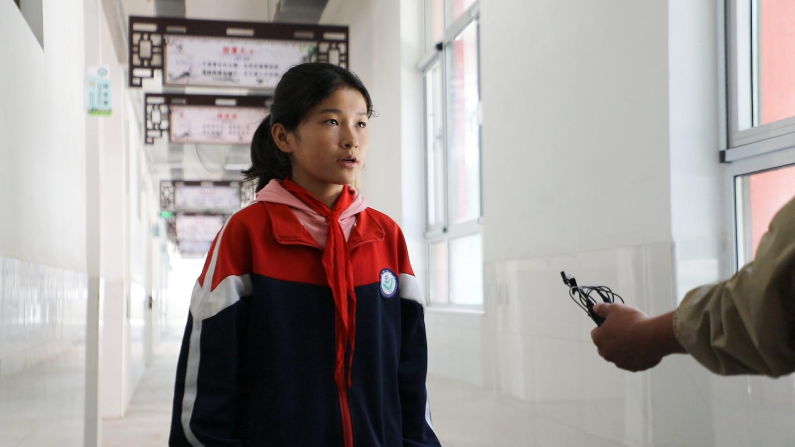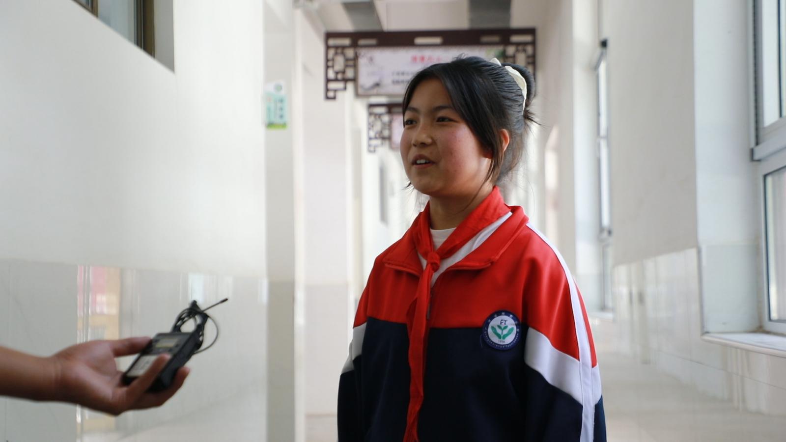 排套小学学生 马荣:王老师的课特别活跃,他会经常联系到生活中有趣的例子给我们讲课,非常的认真。如果我们这道题没会的话,他会细致地再讲几遍。在下雨天的时候,他也会经常跟我们说记得多穿一点衣服,还有带上伞,走在路上不要打闹。