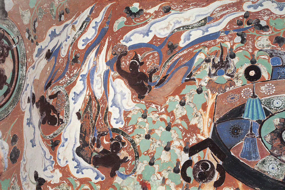 ▲莫高窟第272窟 北凉 莫高窟最早出现的飞天群