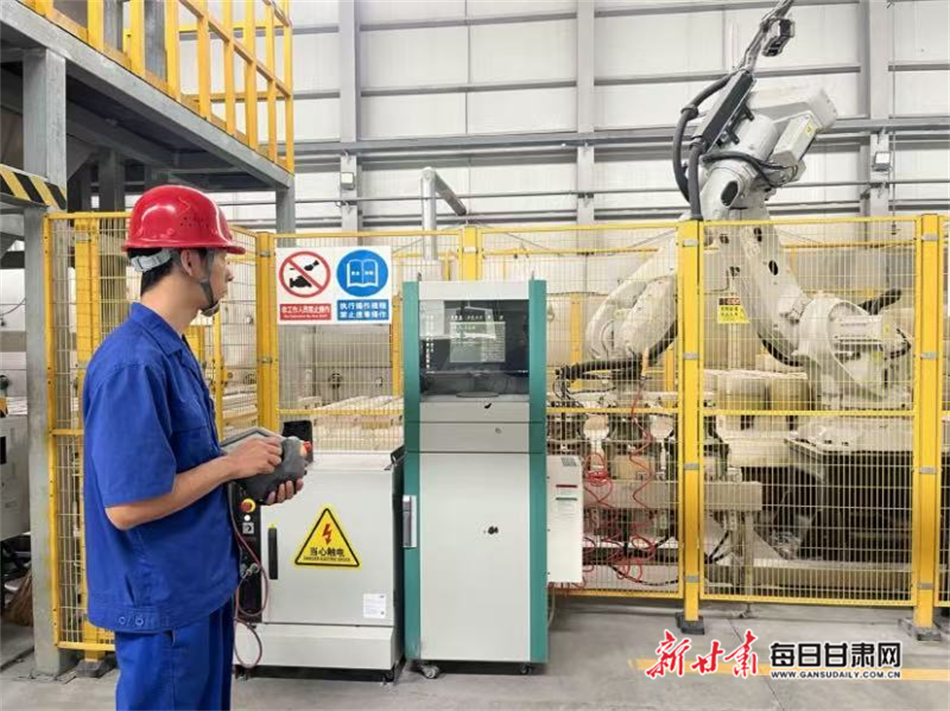 70米煅烧窑工人正在调试机械臂进行物料自动抓取 企业供图