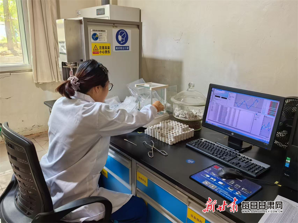 工作人员正在称量样品,分析碳硫 新甘肃·每日甘肃网记者张春燕 摄