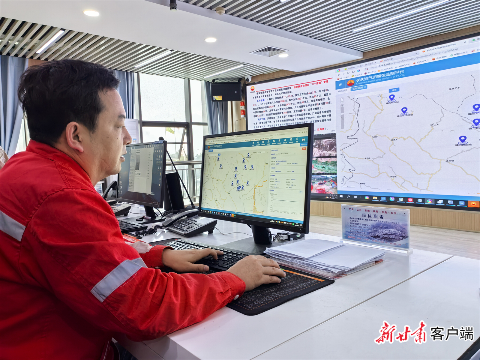 9月17日,“红星照耀中国·‘两点一存’耀华夏”网络主题宣传活动走进位于庆阳市西峰区世纪大道的长庆油田第十一采油厂智能化生产指挥中心。