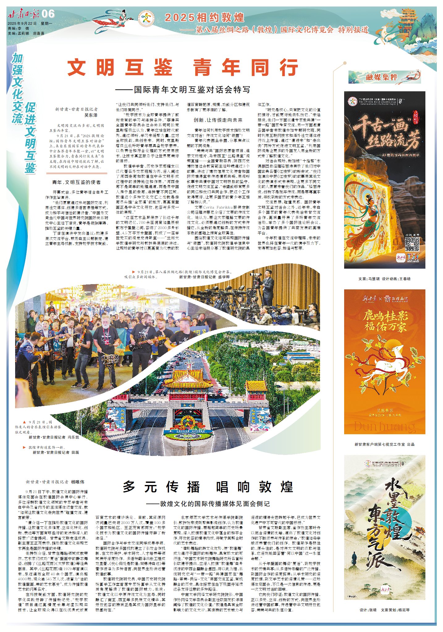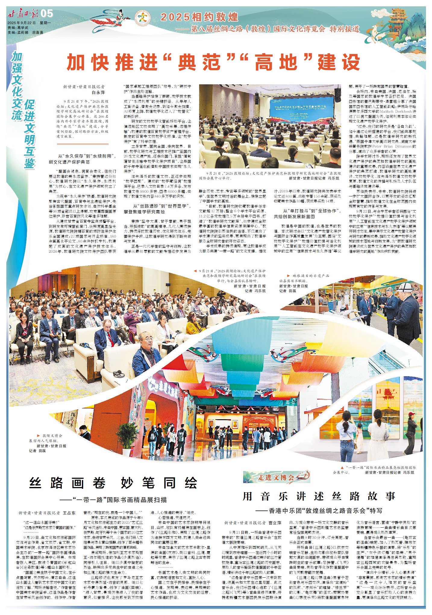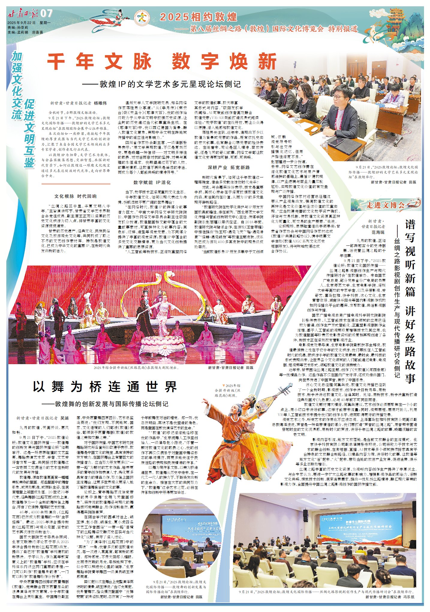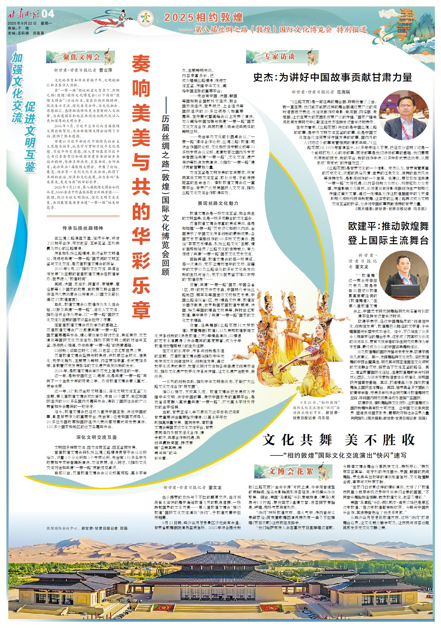 9月22日,《甘肃日报》推出特刊,聚焦第八届丝绸之路(敦煌)国际文化博览会。世界握手敦煌,丝路成就梦想,敦煌敞开襟怀欢迎来自五湖四海的宾客。