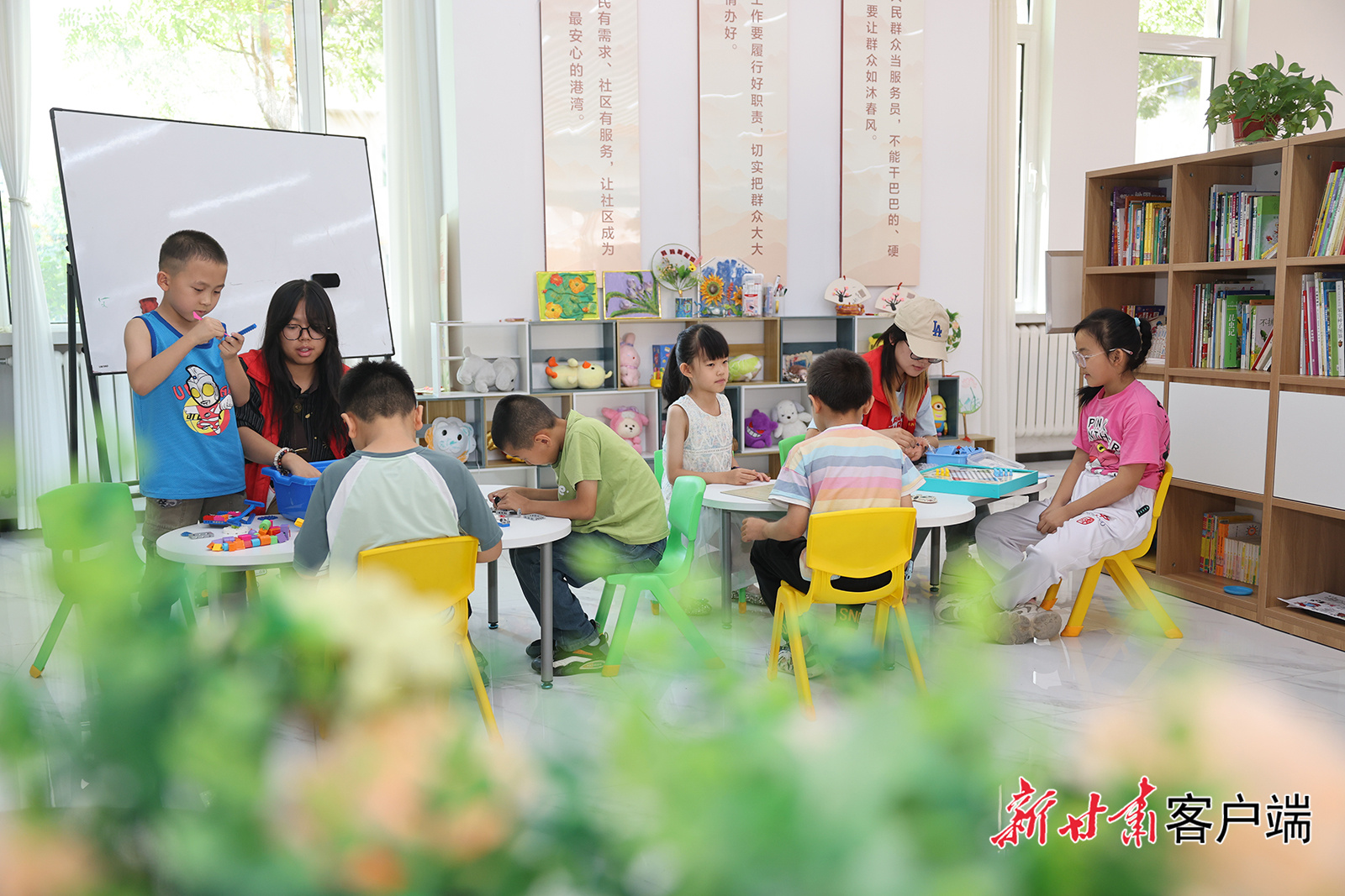 今年8月,兰州市安宁区枣林西社区志愿者正在和暑期成长营的同学互动。
