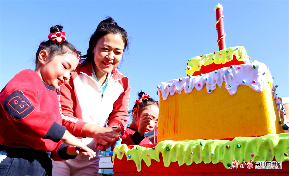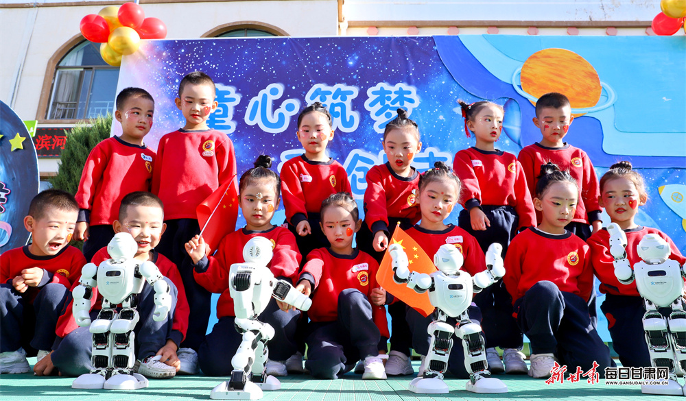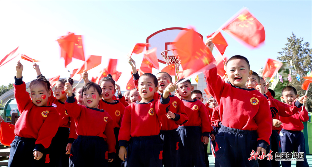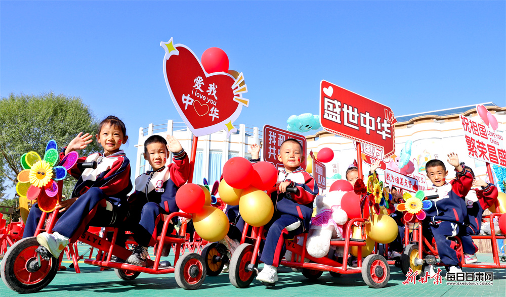 9月29日,张掖市临泽县滨河幼儿园内喜气洋洋,一场以“童心筑梦迎国庆”为主题的活动热闹开启,500余名小朋友在欢声笑语中,用专属方式迎接祖国母亲的生日。