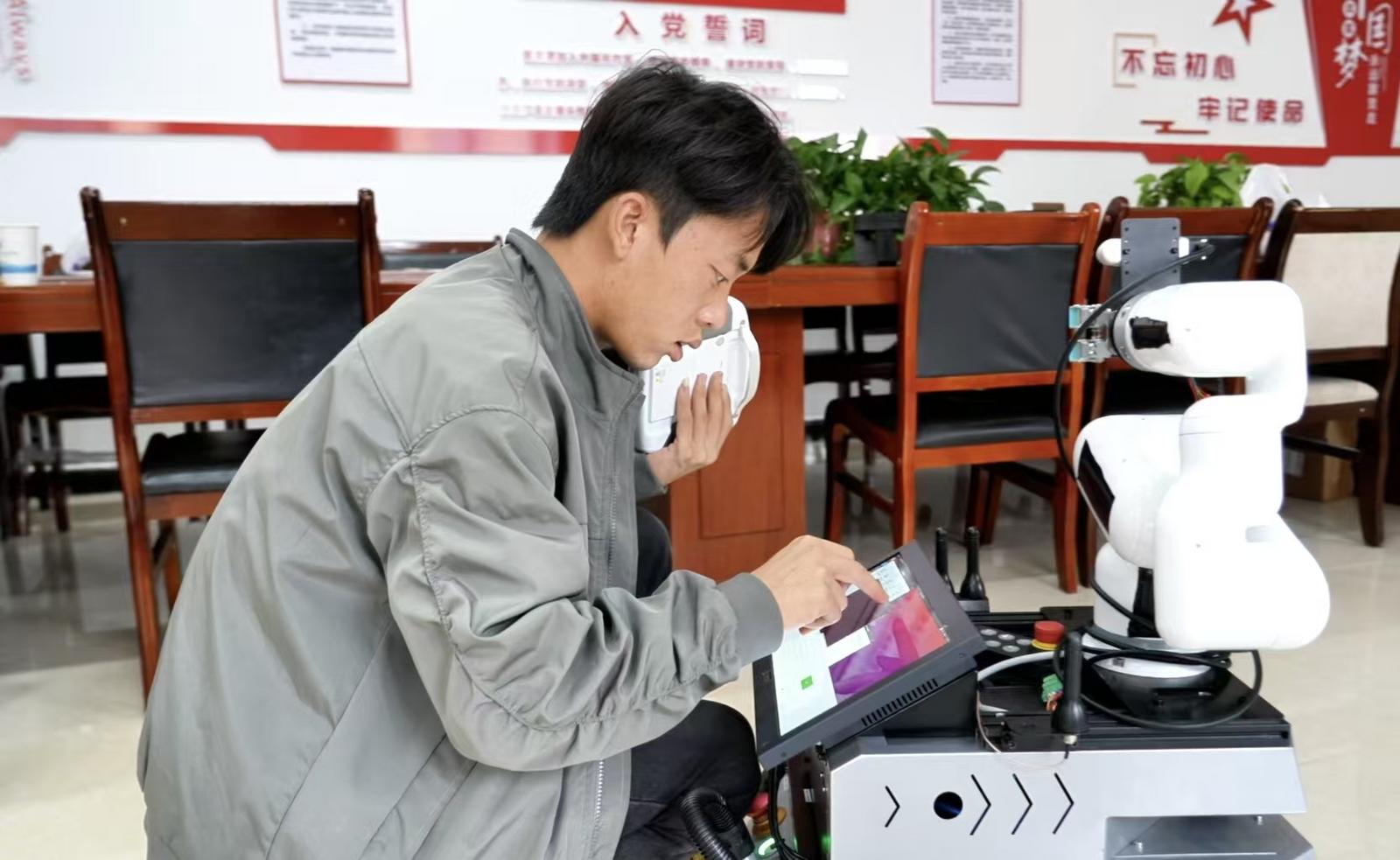 从发布赛题到决赛仅有短短两个多月,备赛成为一场与时间的激烈赛跑。“我们把一天掰成两天用。”刘桐林回忆。赛事一发布,团队第一时间拆解评分标准,将核心技能合理分配给4名队员,构建起“基础强化—专项突破—综合实战”三级训练体系。学校也全力支持,邀请校外专家与往届国赛裁判现场指导,并组织师生深入苹果种植基地开展实战化训练。