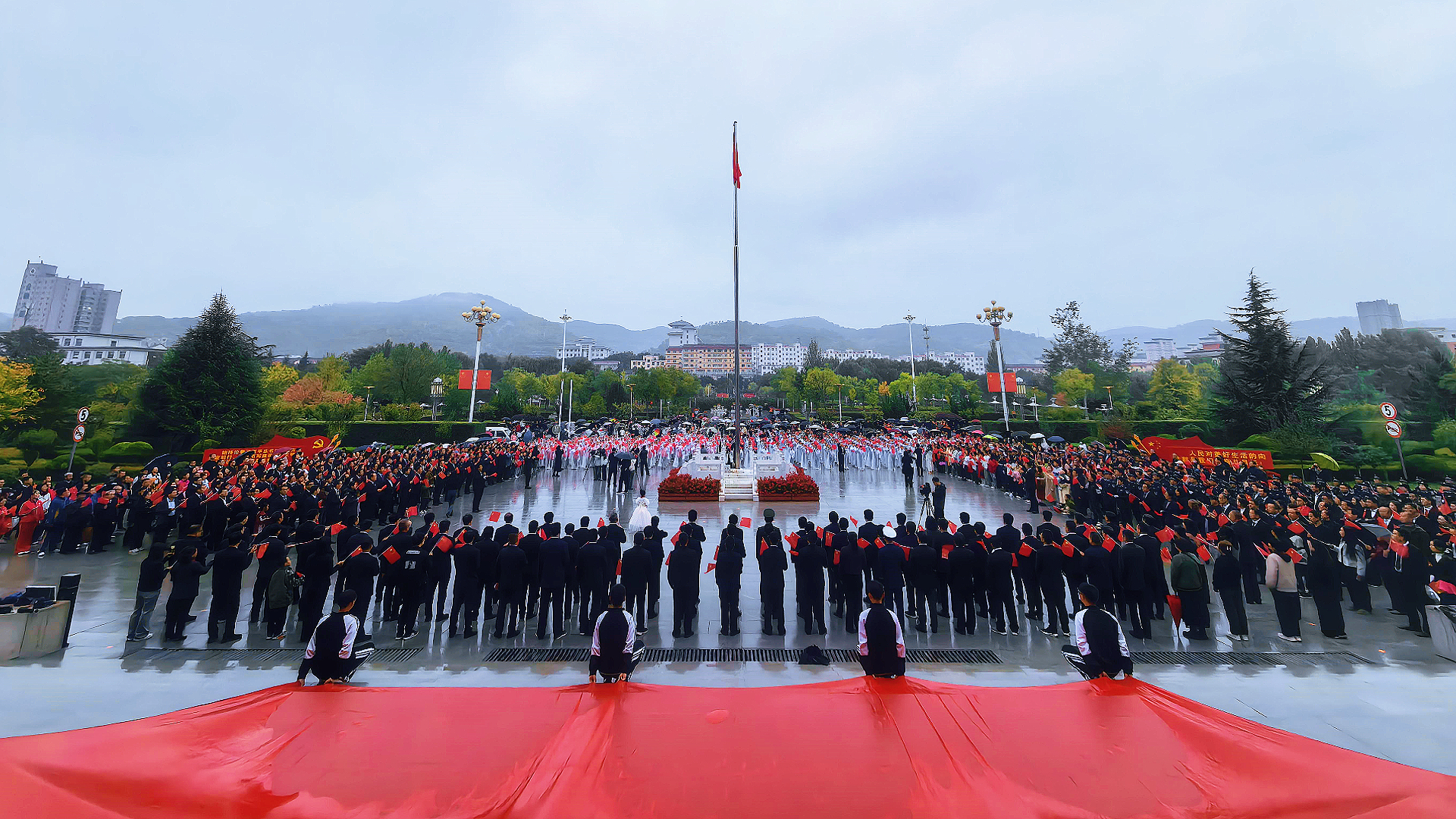 各乡(镇)、县直及省市驻崇各单位主要负责同志,干部职工代表,人大代表,政协委员代表,老干部代表,党员、道德模范、劳动模范、学生及群众代表,共800多人参加了升旗仪式。(崇信县融媒体中心:景彦博 赵亚楠)