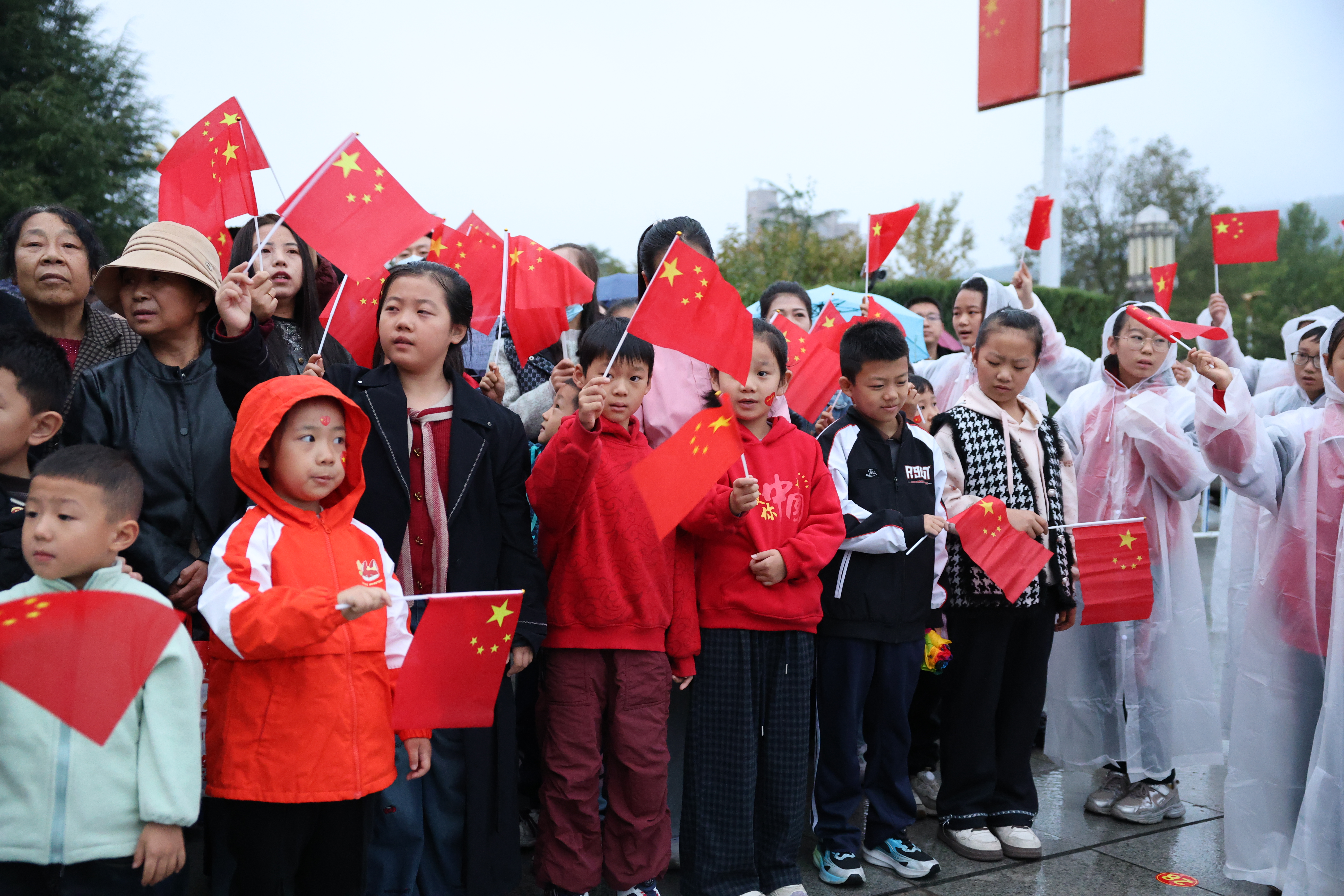 随后,现场干部群众和学生代表共同合唱《歌唱祖国》,歌声嘹亮,情感真挚,唱出了对祖国的无限热爱与坚定信念。大家挥动着手中的国旗,脸上洋溢着自豪与感动,将现场气氛推向高潮。