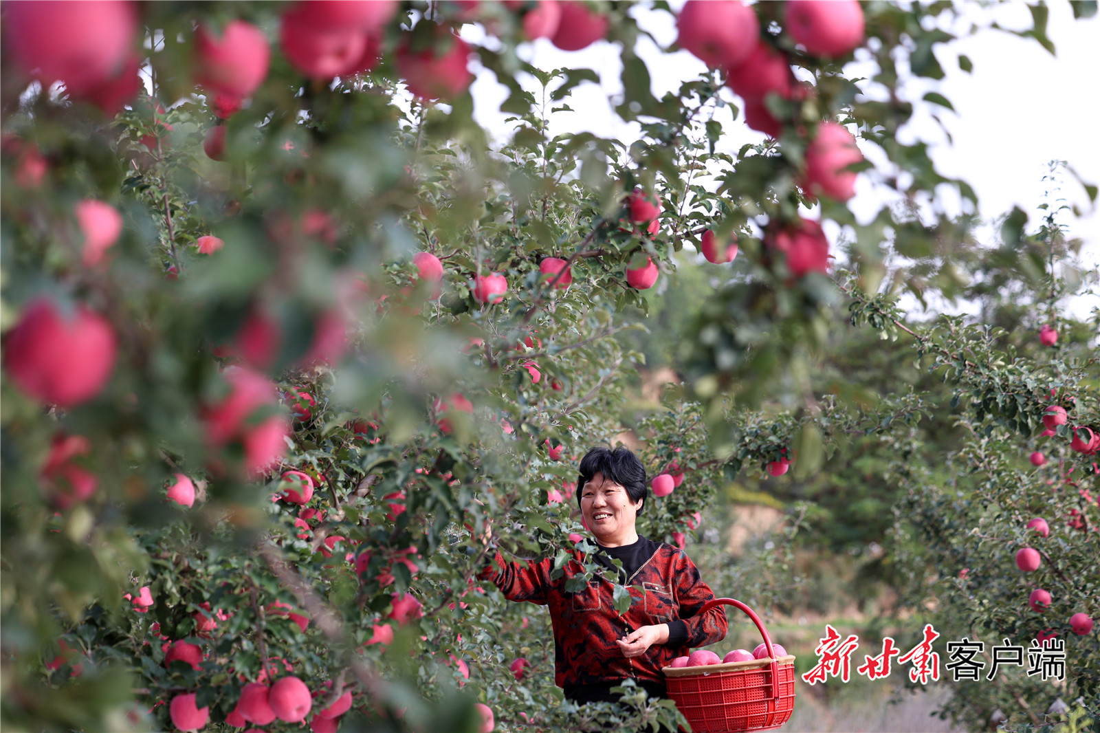 金秋的陇原大地,处处铺展着丰收画卷。在甘肃省平凉市静宁县贾河乡侯山村下山社一处苹果园,果农在采摘苹果。新甘肃·甘肃日报通讯员 侯崇慧