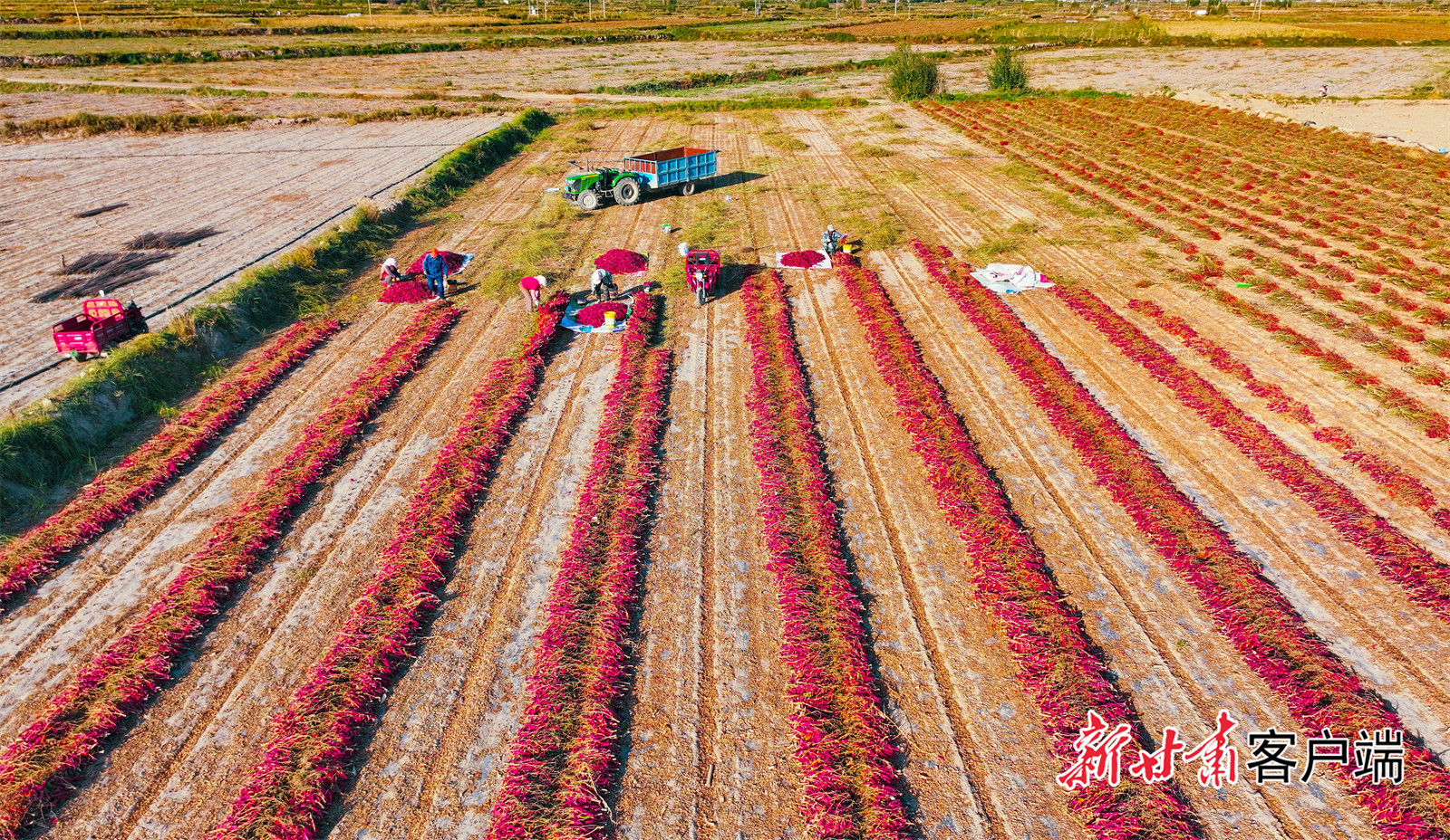 金秋十月,酒泉市肃州区下河清镇辣椒等农作物进入采收期,田间地头人头攒动,处处呈现出丰收的景象。新甘肃·甘肃日报通讯员 高宏善