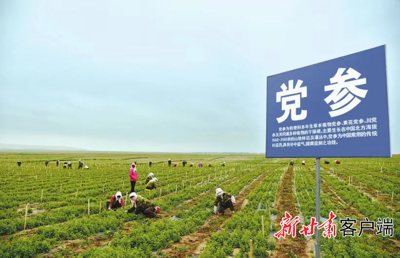 渭源县药农在党参种植基地里忙碌。