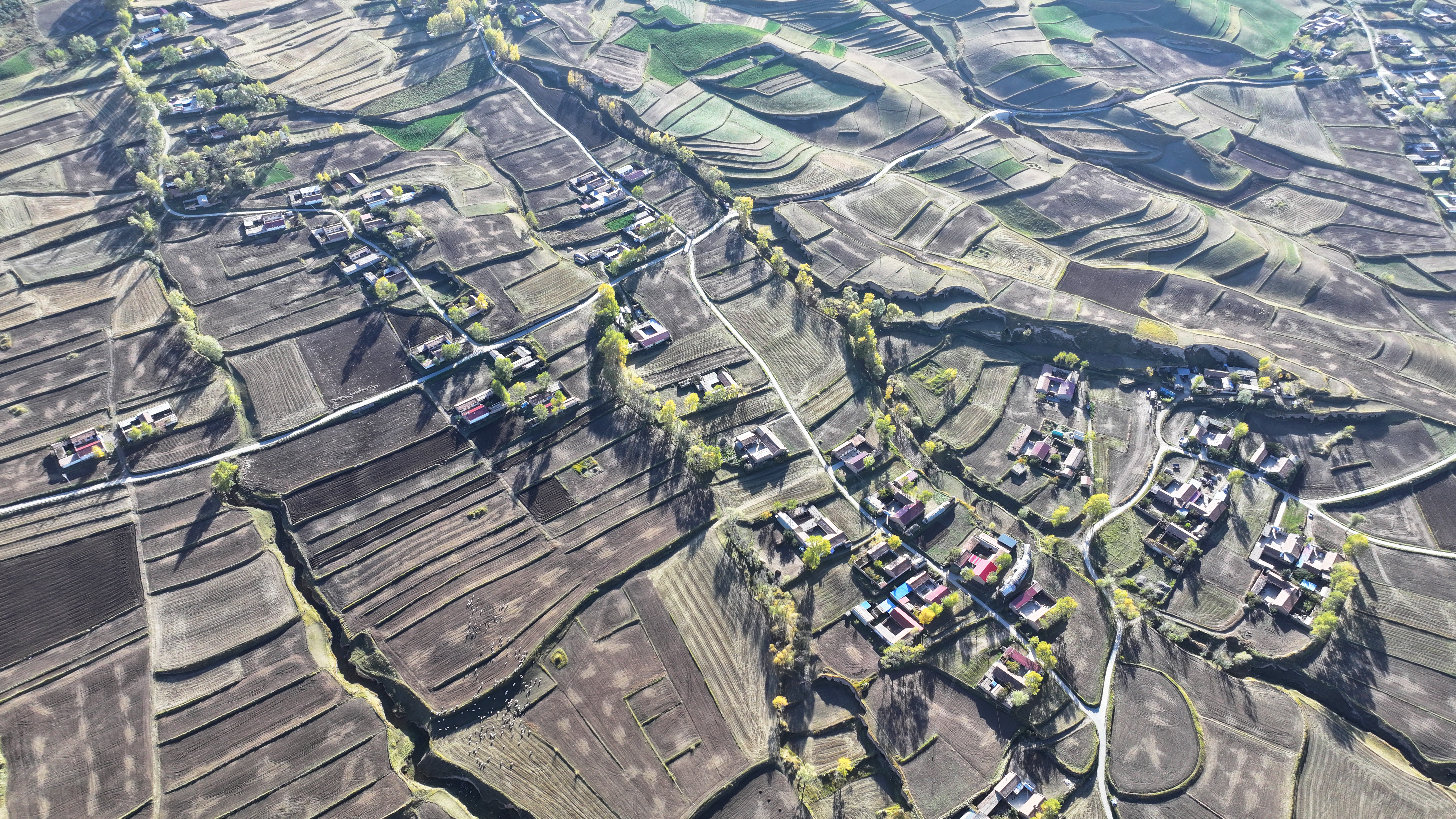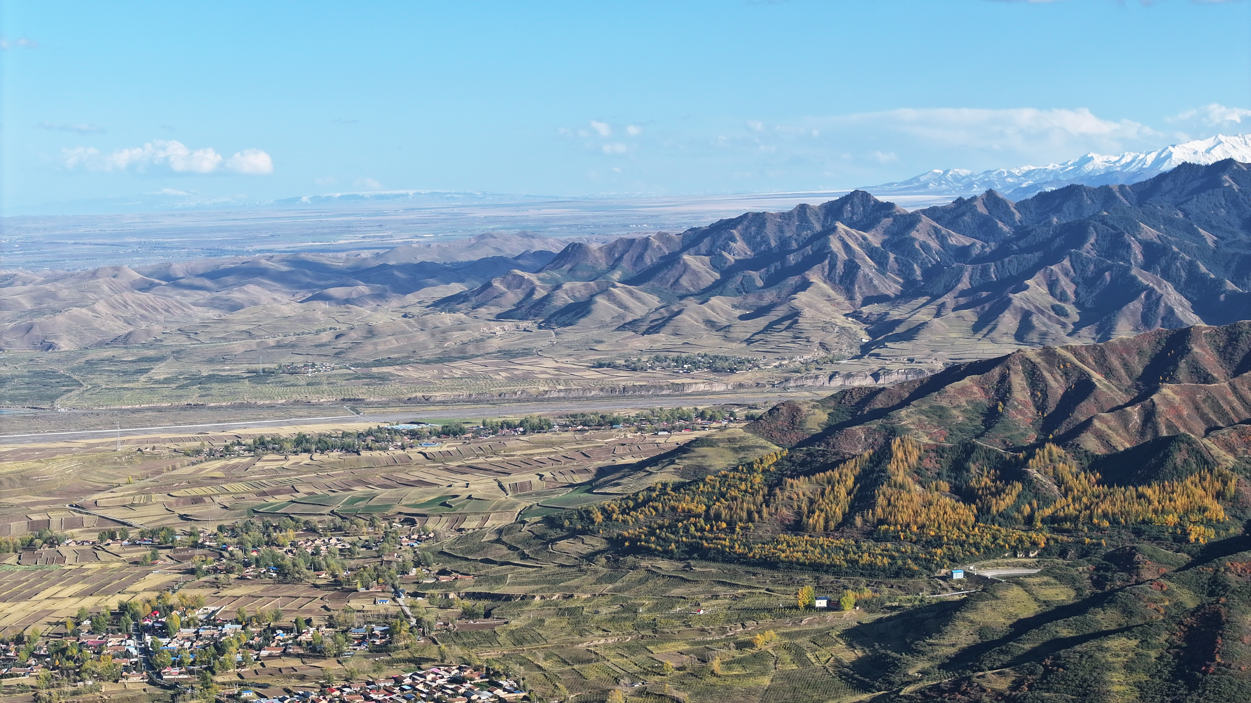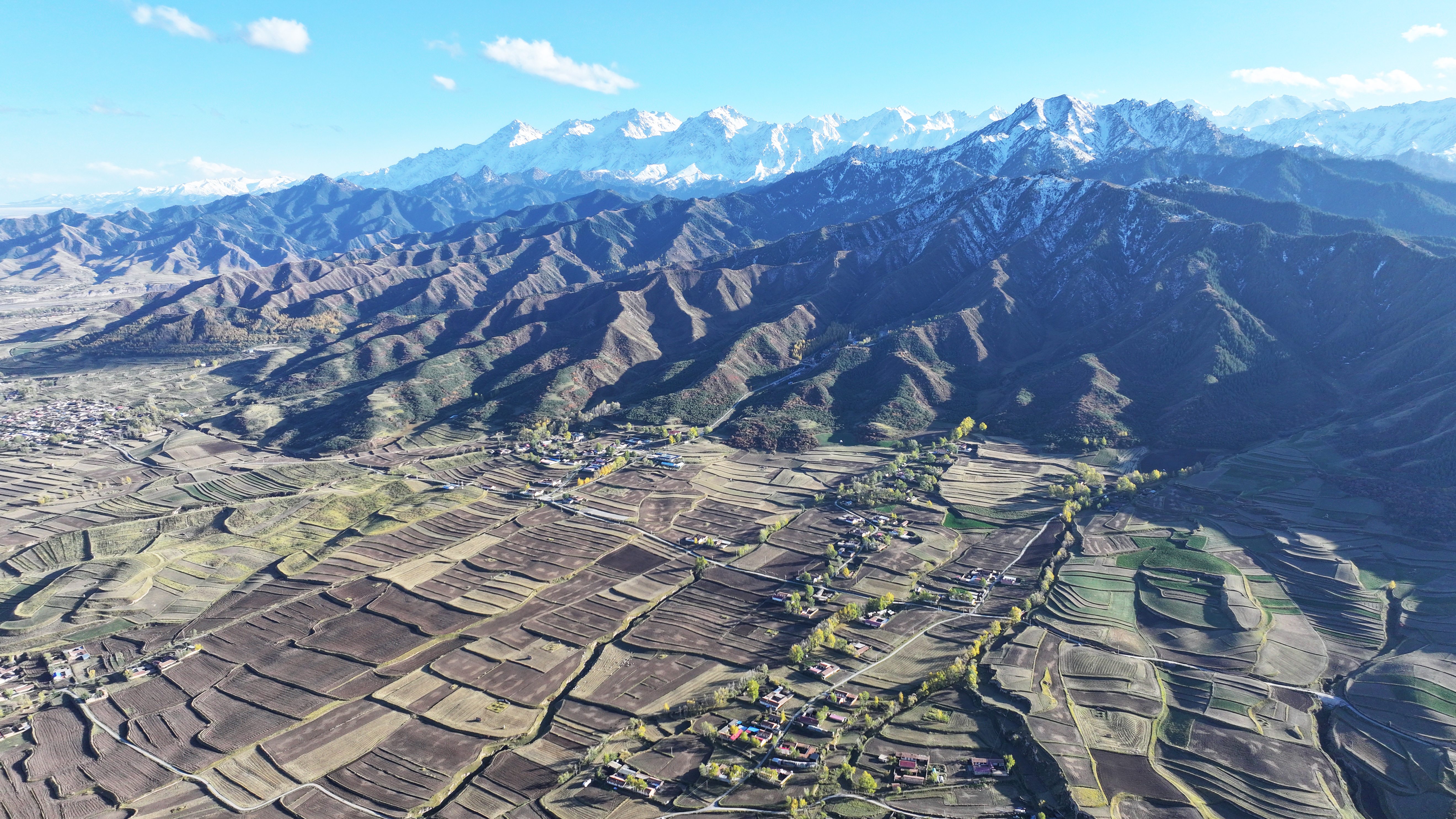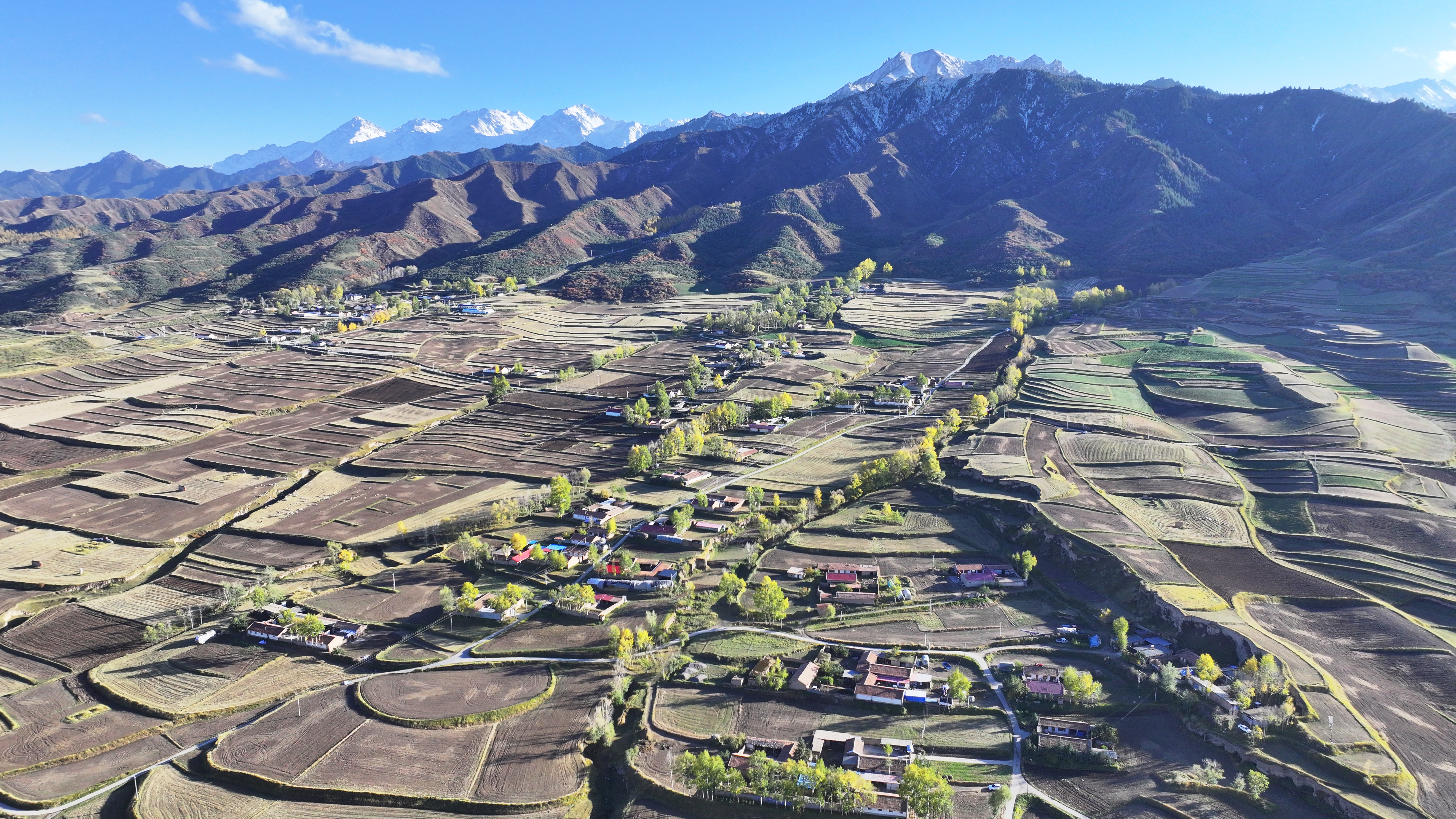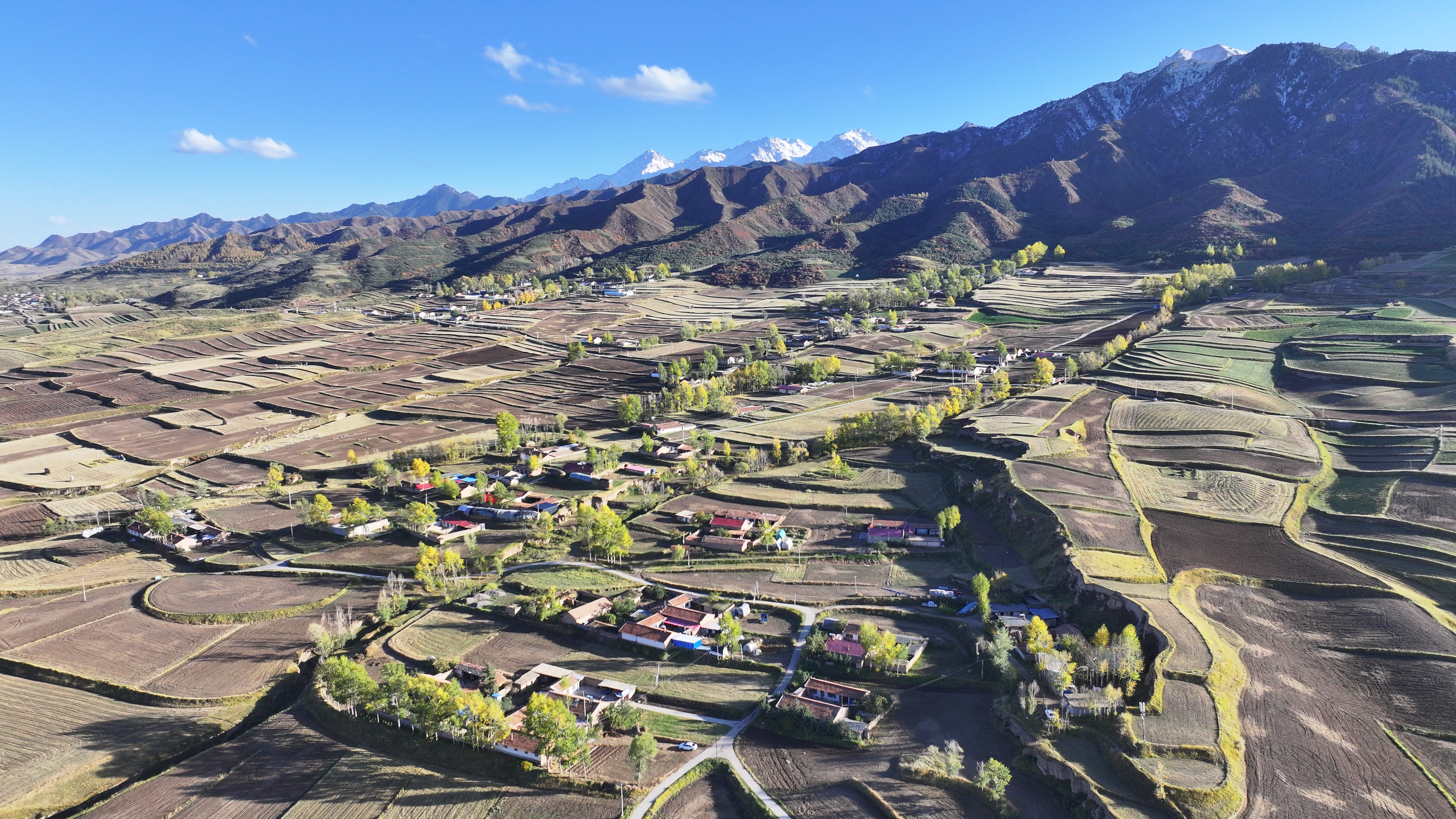 近日,祁连山北麓的张掖市民乐县丰乐镇易家湾村色彩斑斓,田地、民居、山间公路等交相辉映,各种颜色的田块在广袤的田野上构成美妙的几何图案,在祁连山的映衬下,编织成了一幅幅秋日的生态乡村美景图。
