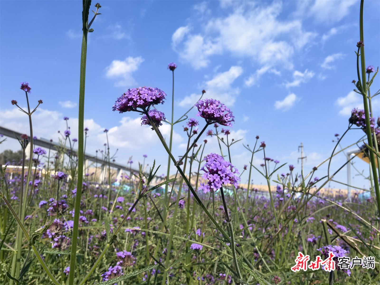 兰州新区的蓝天白云下,花开正好。