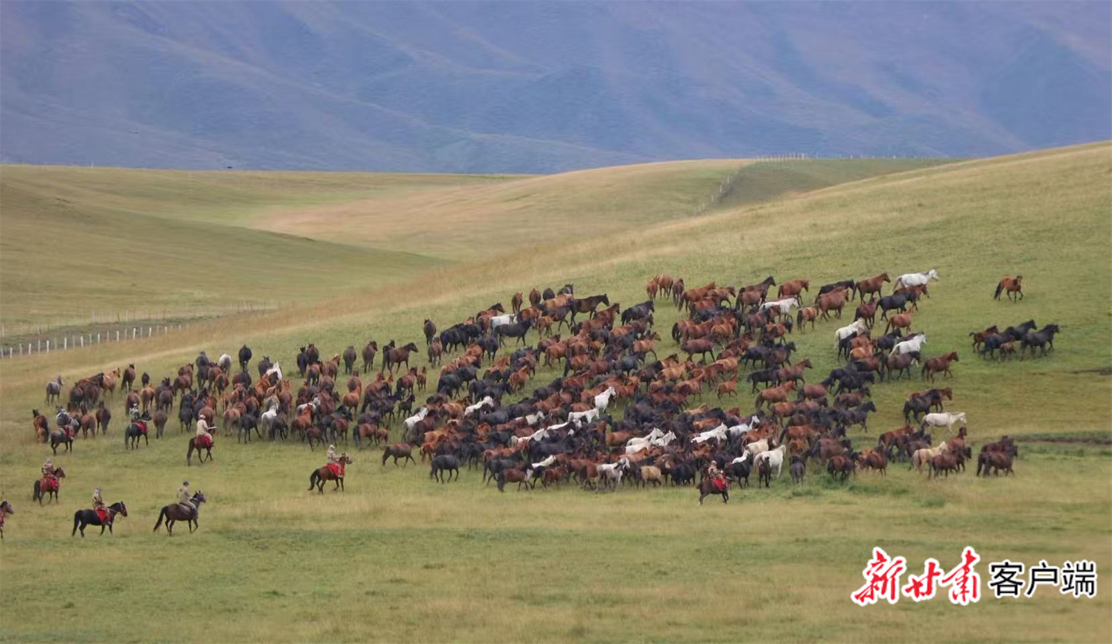 祁连山下,骏马奔腾。新甘肃·甘肃日报通讯员 王超摄。