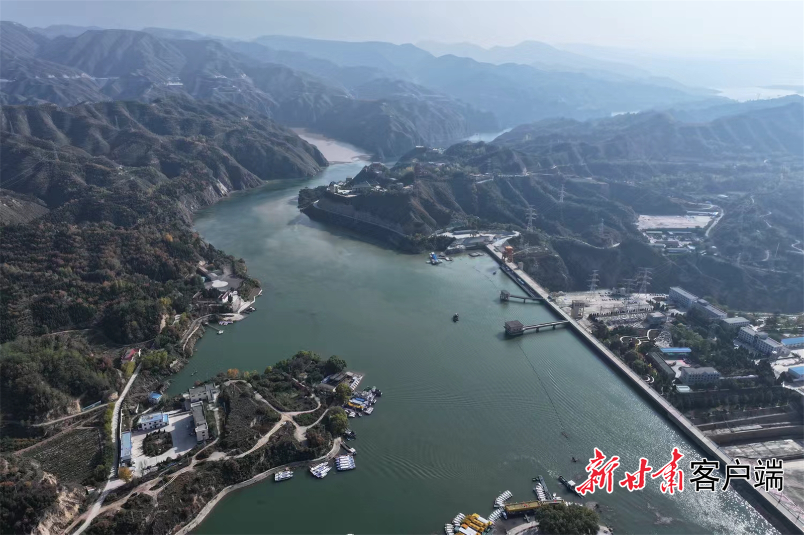 深秋时节的刘家峡水库大坝。