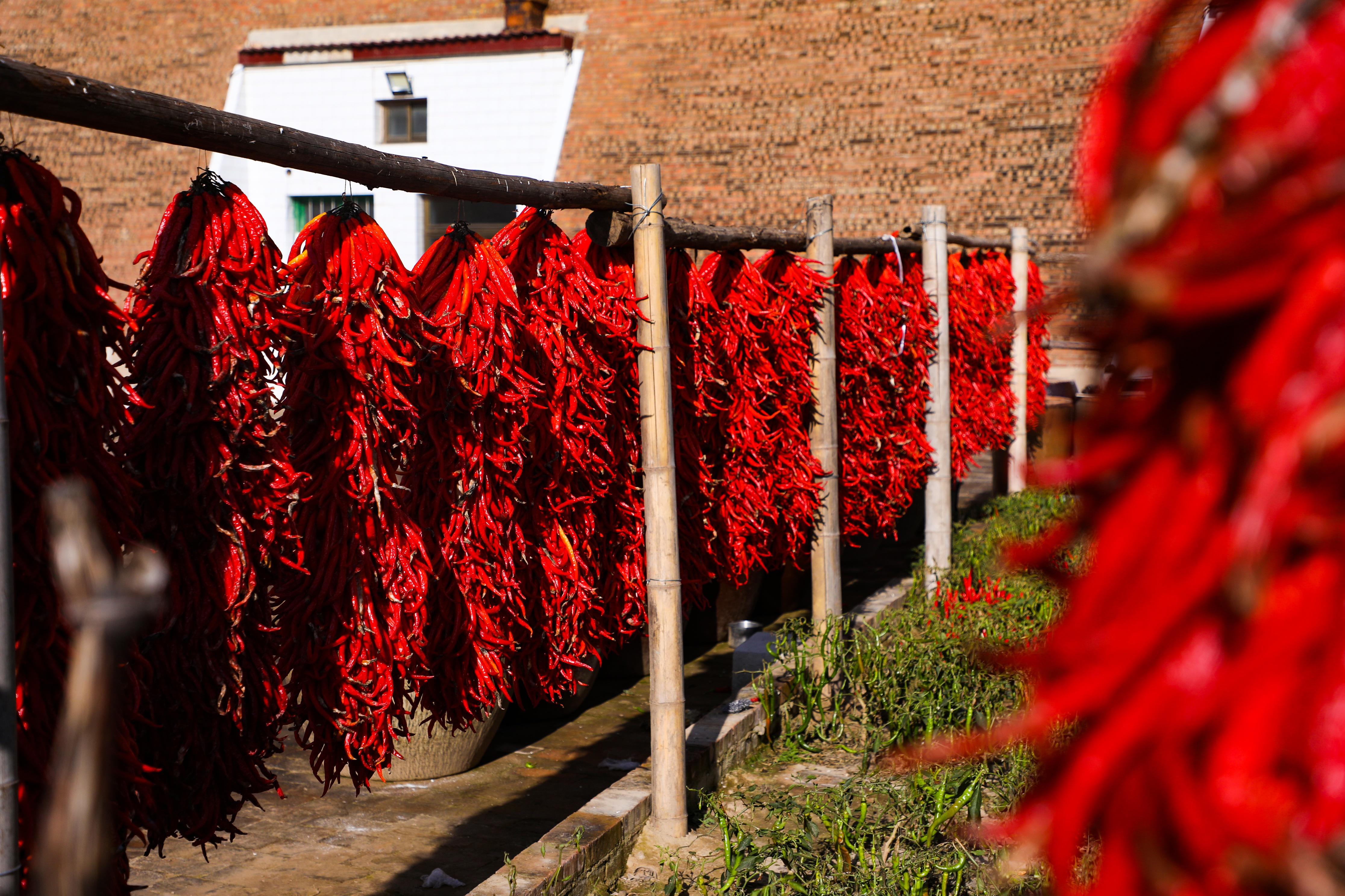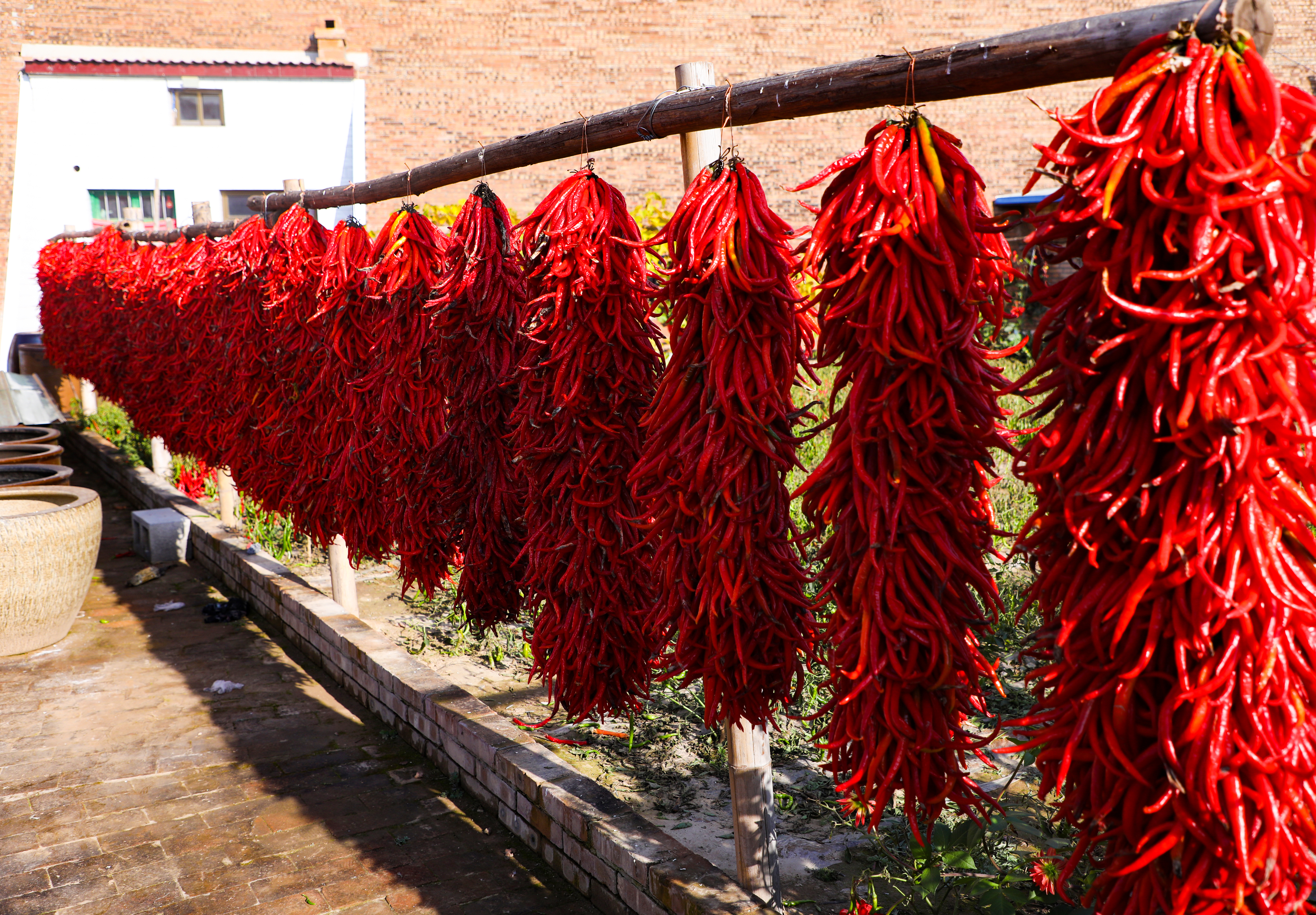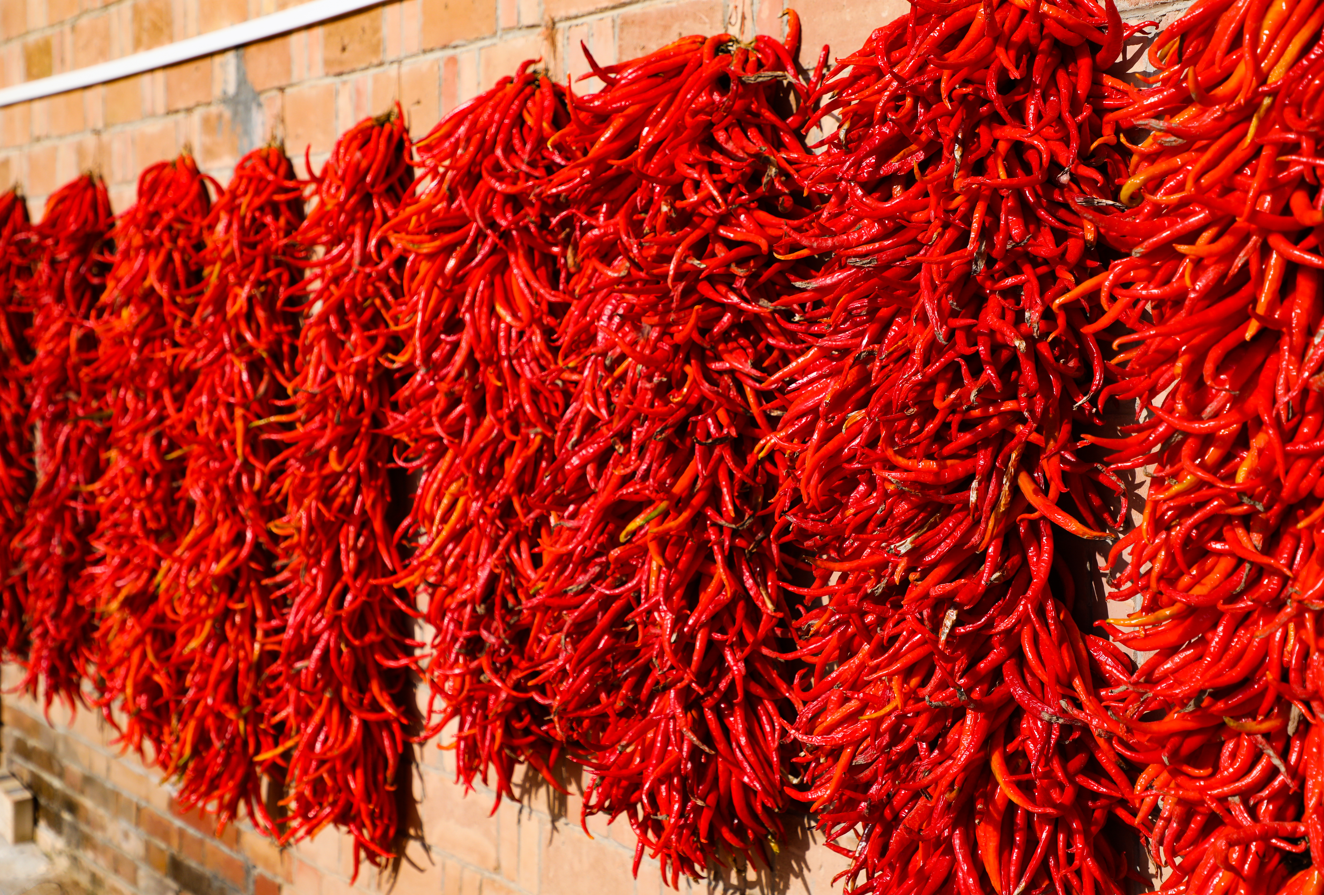 镜头之下,是一片红色的海洋。房檐下、墙头边、院落里,但凡能沐浴到阳光的地方,都挂满、铺满了辣椒。它们不是静物,而是有着生命力的流淌的色彩。一串串辣椒如同喜庆的编钟,在微风中似乎能碰撞出悦耳的丰收锣鼓;铺开的辣椒则像巨大的红色地毯,迎接这最为荣耀的季节。空气里,那股独特而浓郁的辛香,是独属于这片黄土高原的丰收味道。