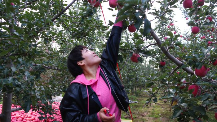 走进毛店村苹果种植基地,空气中弥漫着清甜的果香。果农们穿梭在果树间,小心翼翼地将苹果摘下,放进背篓。“种了20亩苹果,今年的收成还不错,20亩今年能收入20多万元。”榜罗镇毛店村苹果种植大户白海亮高兴地说,他家种植的20亩苹果已被客商全部预订,销路一点也不发愁。