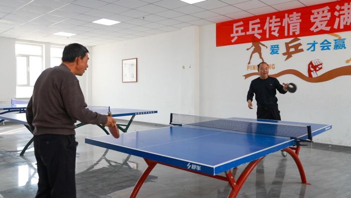 老人们在打乒乓球