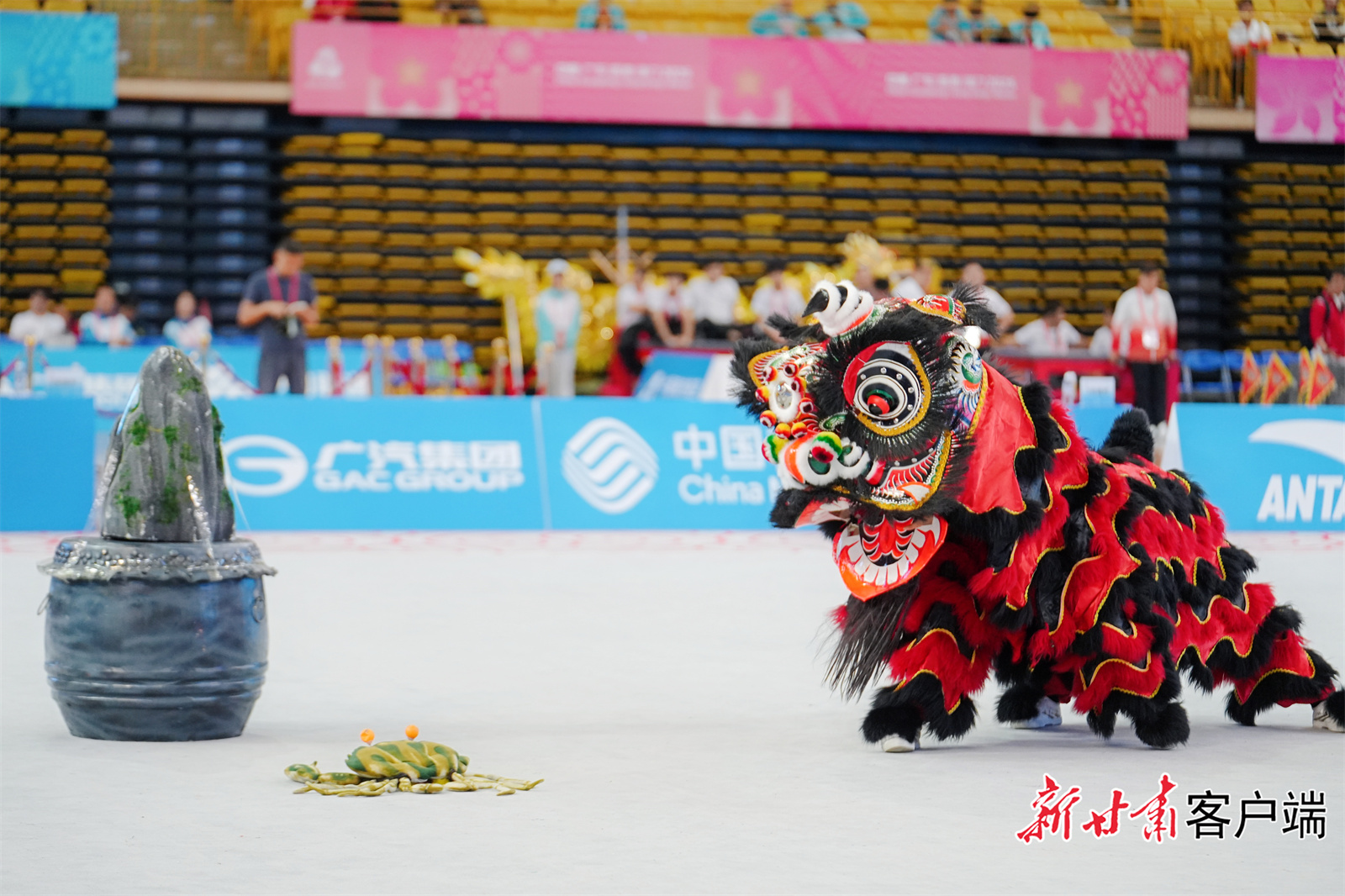 十五运会群众展演舞龙舞狮项目决赛现场,我省带来南狮传统表演《狮子出洞采蟹青》。视频由新甘肃·甘肃日报记者 何佳睿 摄制