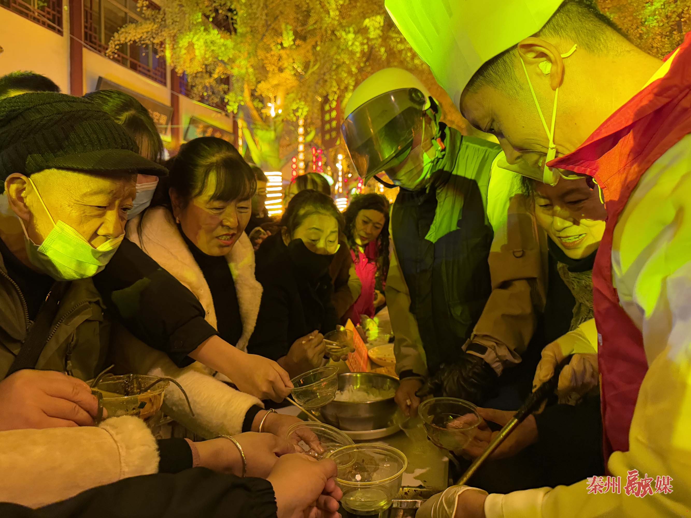 秦州区融媒体中心11月13日讯 (记者 赵婷)11月12日晚,“黄金大道”灯火璀璨,光影交织中人群熙攘,一场融合视听艺术与地道美食的文化活动温情上演,尤其是那碗热气氤氲的麻辣烫,以最朴实的烟火气息点亮了秦州的夜色,温暖了市民的心。