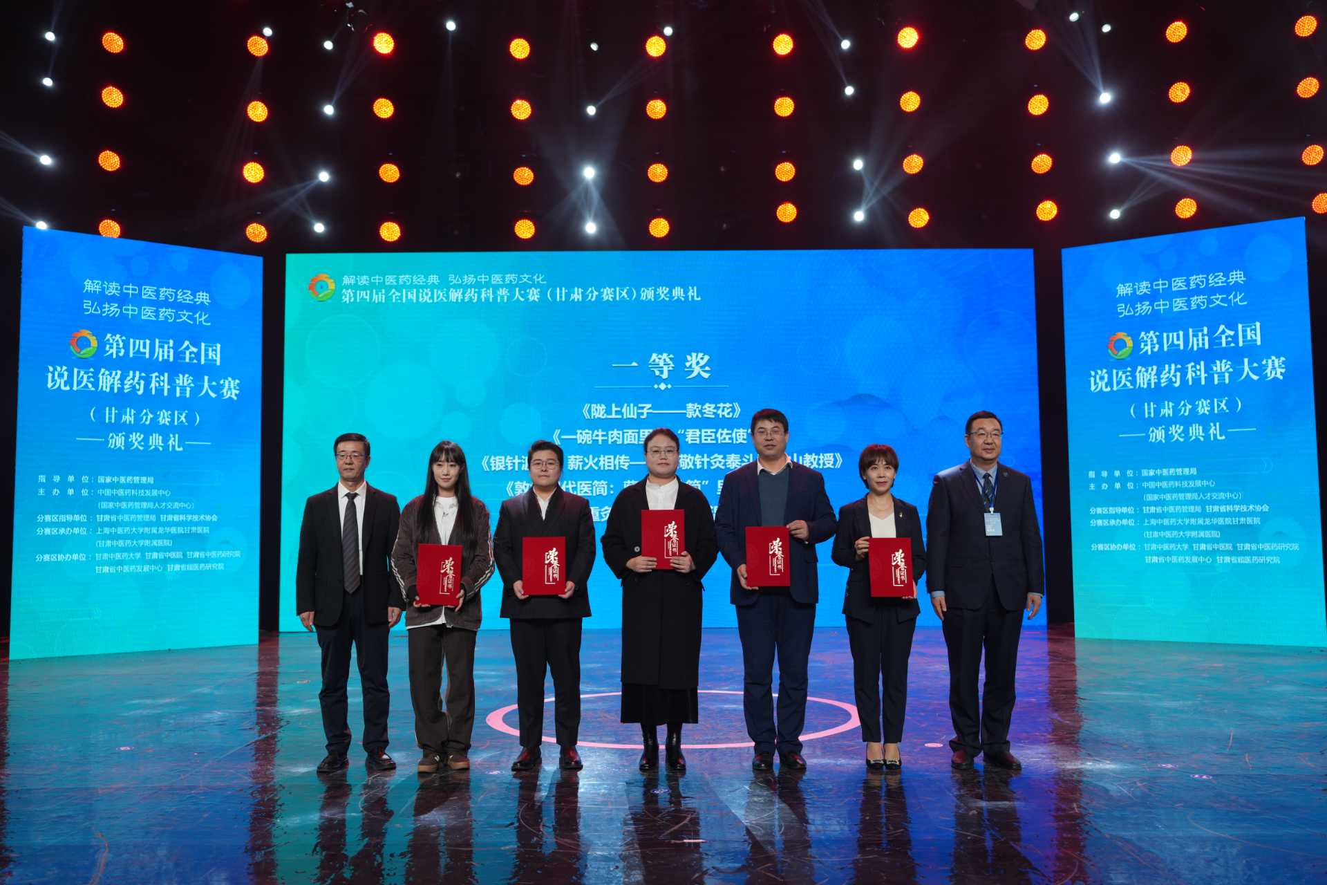 颁奖仪式上对部分获奖作品进行了展播,包括《敦煌重灸—丝路传承的温养智慧》《一碗牛肉面里的“君臣佐使”》《银针渡人,薪火相传—致敬针灸泰斗郑魁山教授》《敦煌汉代医简:藏在“竹简”里的健康指南》《陇上仙子—款冬花》等,反映了甘肃深厚而独特的文化底蕴;甘肃中医药大学附属医院演绎的舞蹈《敦煌医韵》、情景剧《传承》表达了陇原医务工作者对甘肃中医药事业的热爱和传承创新的热情,现场观众掌声阵阵。甘肃省广播电视总台、新甘肃客户端等媒体平台对仪式进行了现场直播。