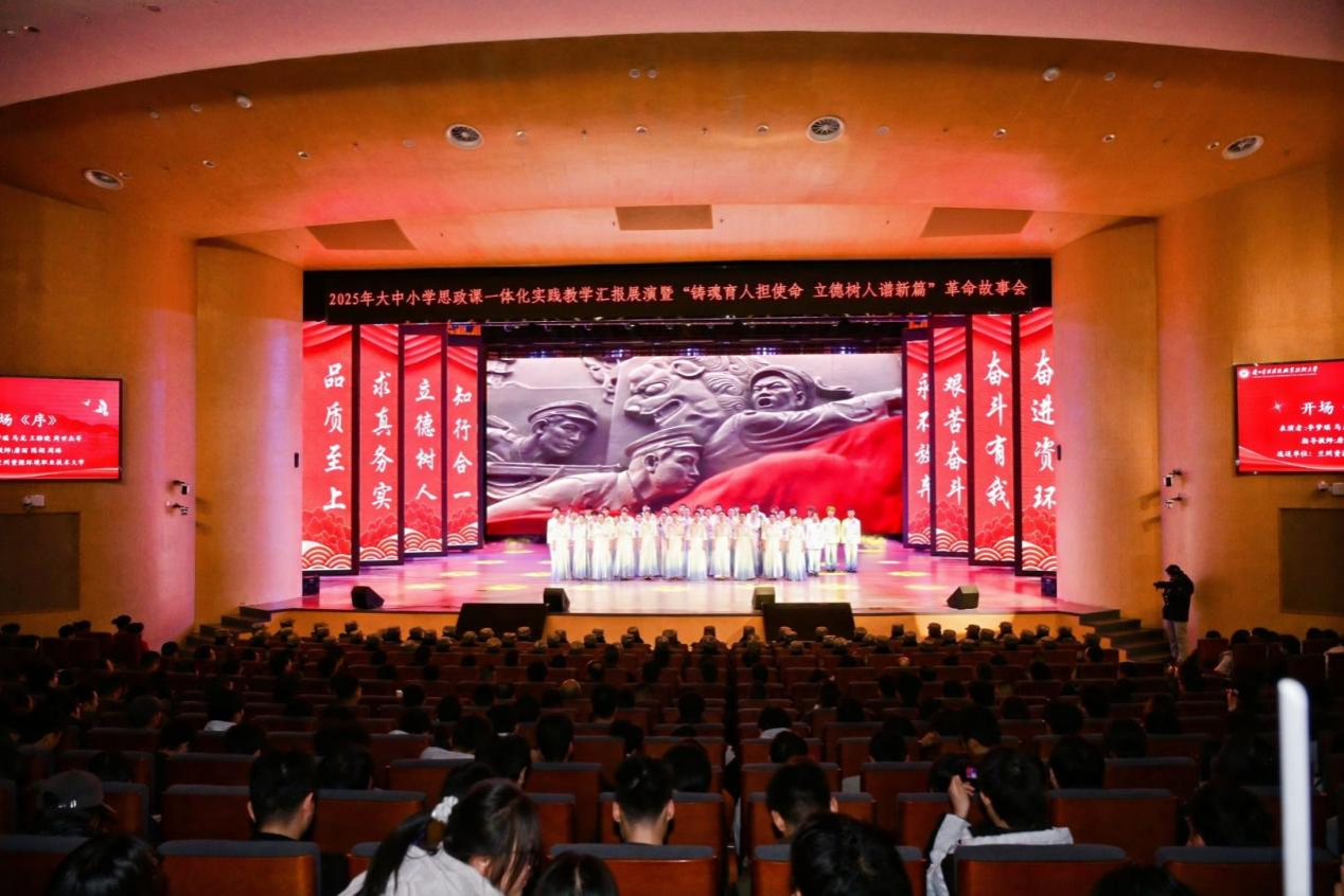 为深入学习贯彻党的二十届四中全会精神,传承红色基因、弘扬革命精神,推动大中小学思政课一体化建设走深走实。11月19日下午,兰州资源环境职业技术大学举办2025年大中小学思政课一体化实践教学汇报展演暨“铸魂育人担使命 立德树人谱新篇”革命故事会。学校领导班子成员,受邀参演学校领导、马院、团委负责人、思政课教师代表,学校各部门负责人、思政课教师、辅导员及学生代表近800人现场观看,同步线上直播吸引6.7万余名师生云端观看。