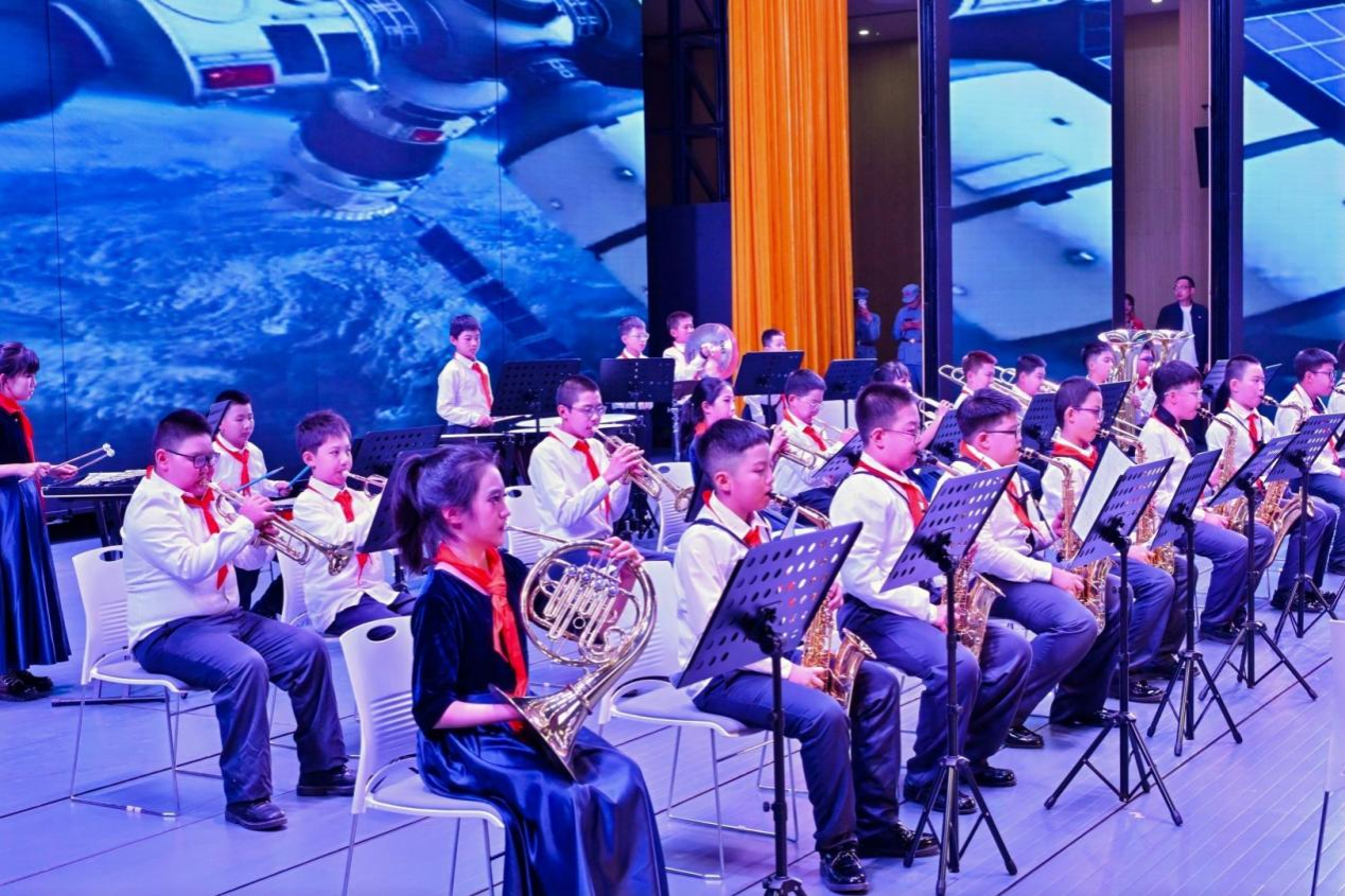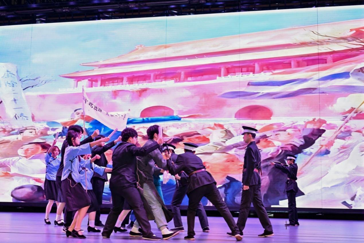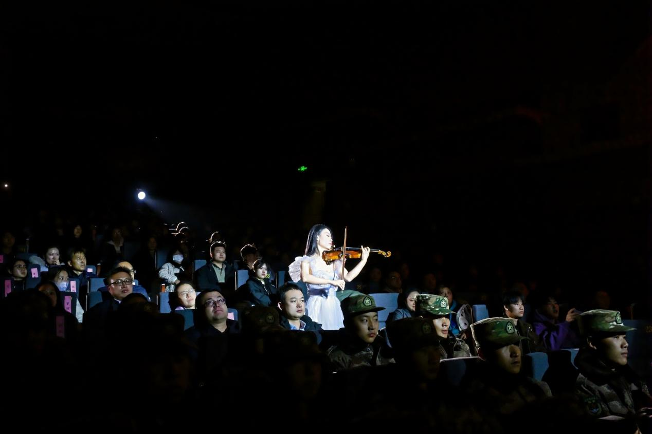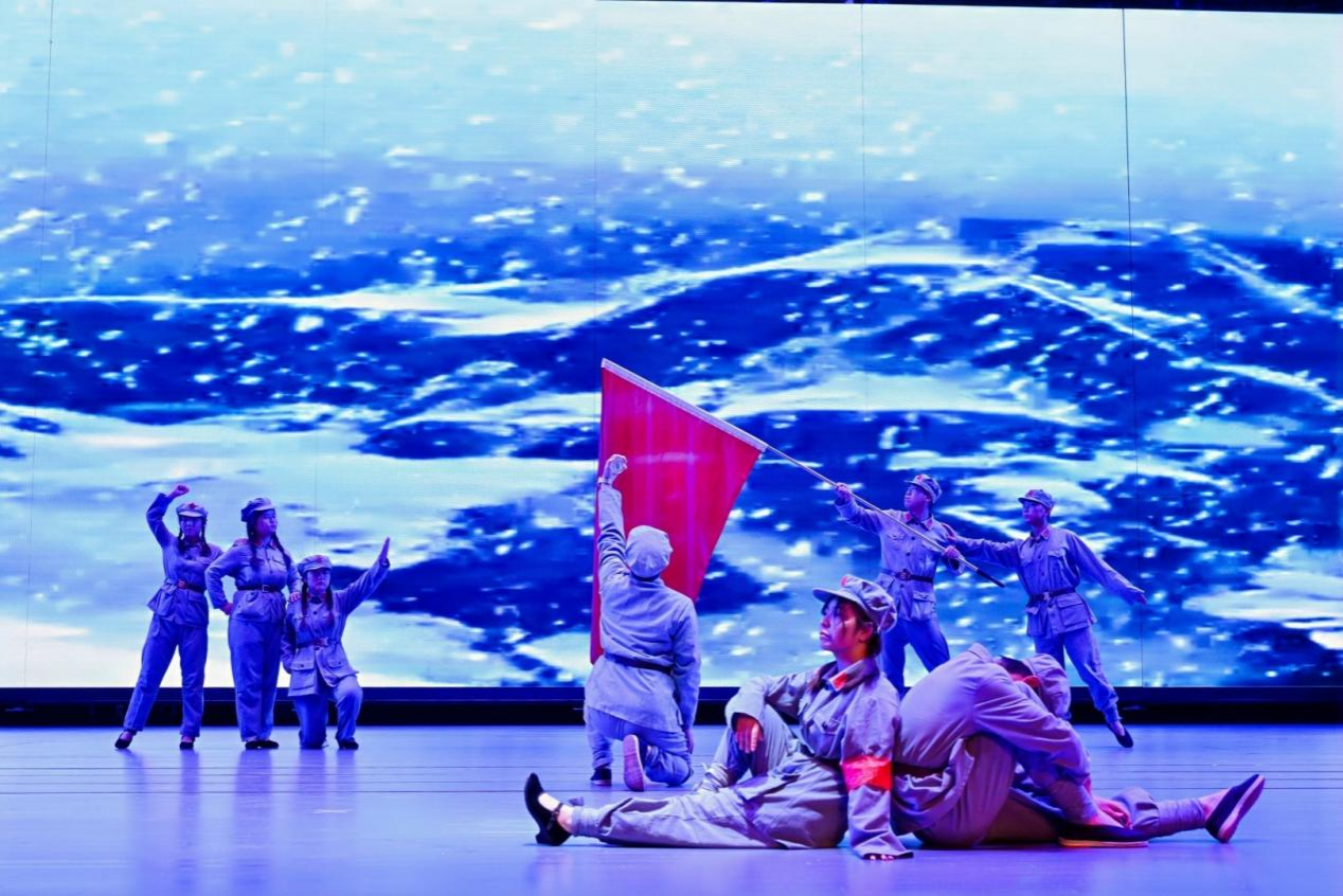 展演共分浴血征程・奋斗之歌、平凡英雄・大地夯歌、同心绘梦・未来之歌三个篇章,通过情景剧、主题宣讲、朗诵、管乐合奏、歌伴舞等多种艺术形式,串联起跨越时空的红色故事。以小提琴独奏搭配合唱《祖国不会忘记》开篇,瞬间点燃现场氛围。在“浴血征程・奋斗之歌”篇章中,《祁连雪・红军骨》再现峥嵘长征路上的艰辛,《等待》通过讲述邓稼先28年隐姓埋名、扎根戈壁的感人故事,深刻诠释“两弹一星”精神,《破晓》传递信仰力量,带领观众回望烽火岁月。在“平凡英雄・大地夯歌”篇章里,《永不倒下的红旗》回溯兰州战役窦家山战斗的壮烈,《如愿》以舞姿告慰英魂,《你若记得我便活着》深情诠释共产党人的牺牲精神,引发全场共鸣。在“同心绘梦・未来之歌”中,管乐合奏《我的中国心》《我们走在大路上》,以少年赤子情怀展现“少年强则国强”的动人画面,《我的祖先名叫炎黄》致敬华夏文明根脉,《我们的中国梦》奏响新时代奋进强音,彰显代代相传的奋斗之志。展演在全体演职人员与现场师生共同唱响《歌唱祖国》的激昂旋律中落下帷幕。