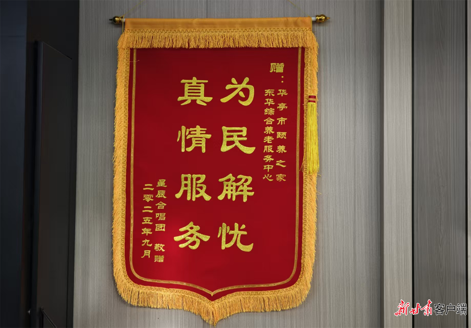 居民合唱团为东华综合养老服务中心赠送的锦旗。