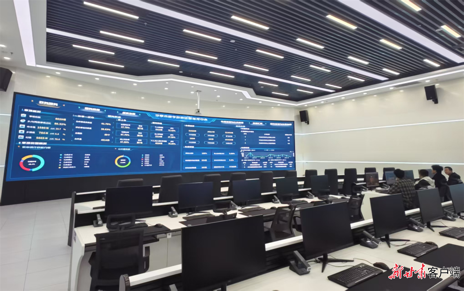 华亭市智慧城市指挥中心的智慧大屏实时显示城市运行各项数据。