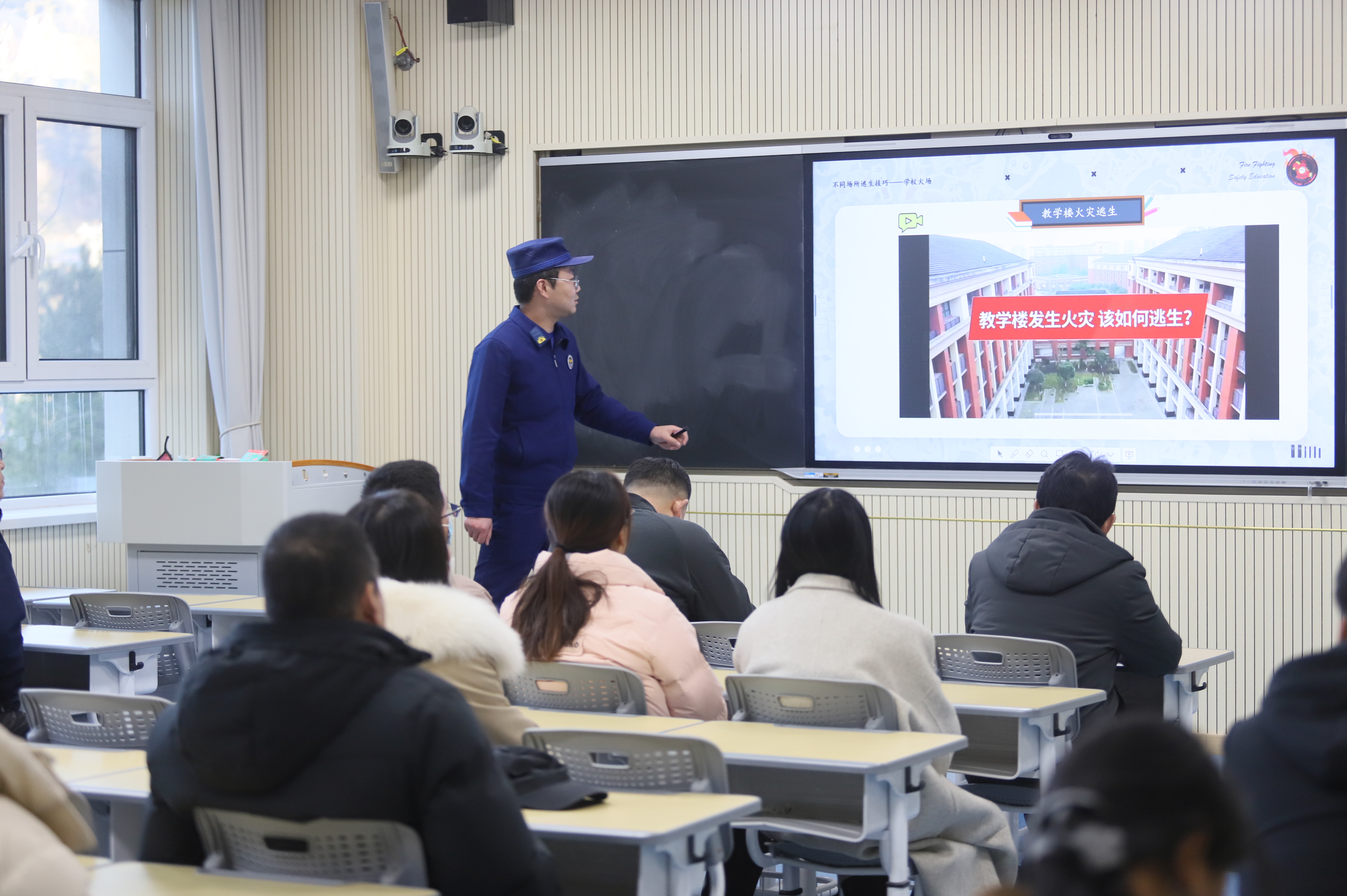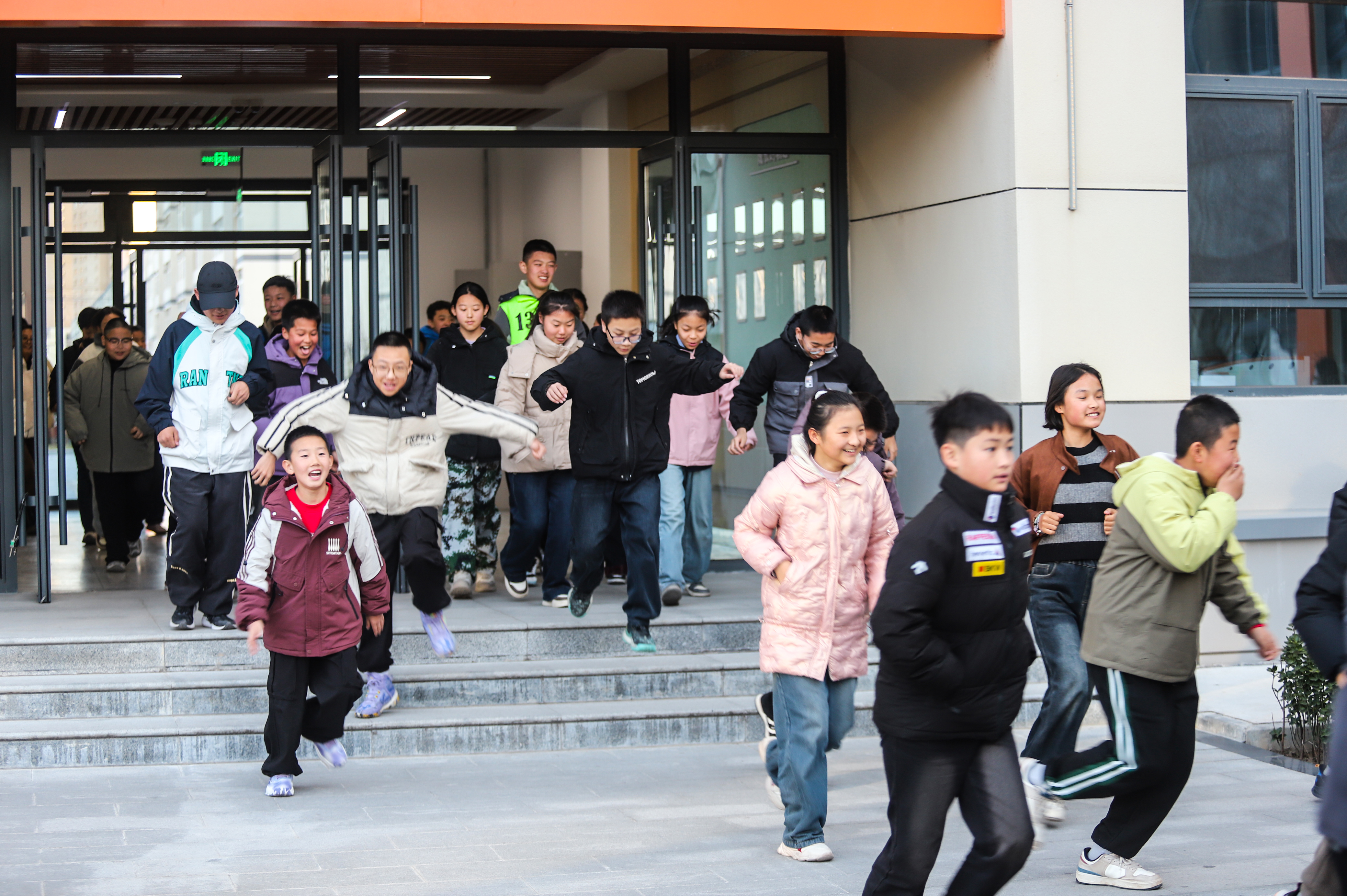 在理论讲解后,消防警报骤然响起,全校师生按照“弯腰低姿、捂住口鼻、沿疏散路线撤离”的要求,在消防宣传员现场指挥下,完成从教室到安全集合区域的疏散演练,全程紧张有序、规范高效。