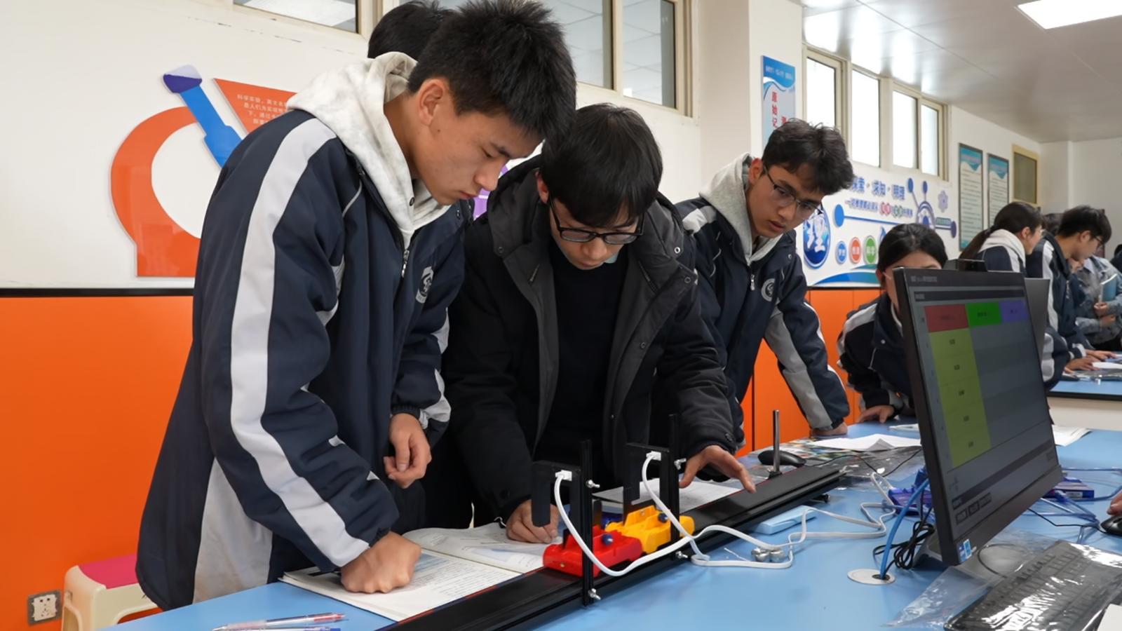 广河中学学生 马梦颖:第一次在里面做实验时我特别惊喜,以前用传统仪器记录数据时,又慢又容易出错,现在传感器不仅能实时捕捉到数据的变化,而且还能在屏幕上直接生成图表,课本里的公式,一下子就和实际现象对应起来了。