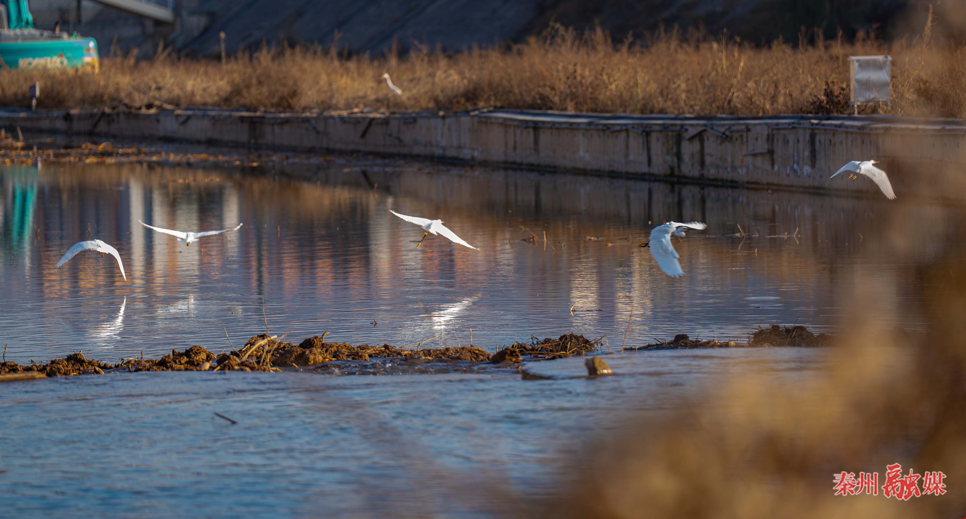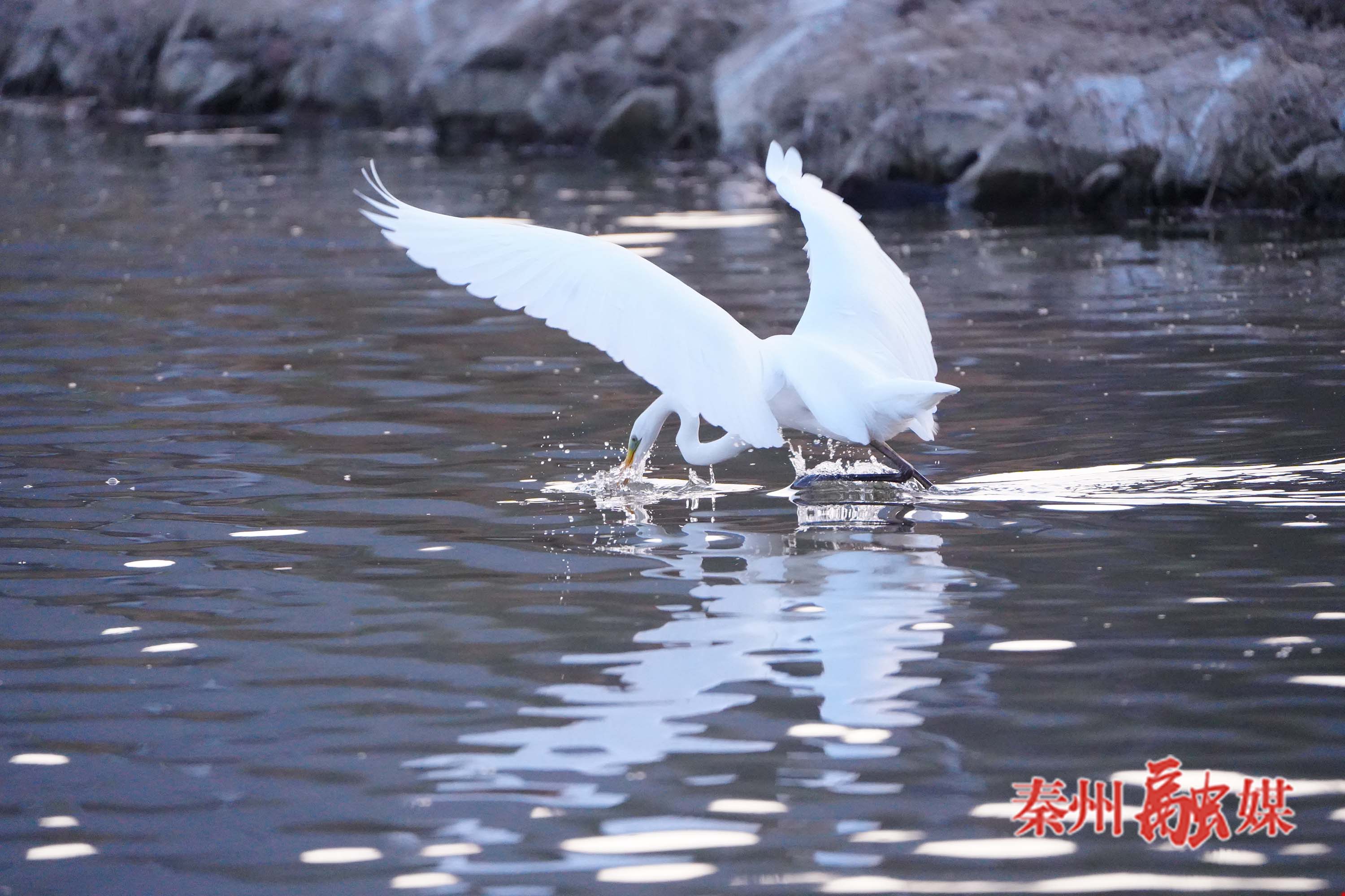暖阳下的藉河,水波荡漾,成群候鸟或在水中悠然游弋,或在浅滩梳理羽翼,或盘旋天际划出优美弧线。洁白的白鹭踮着修长细腿,低头捕食时溅起朵朵水花;国家二级保护动物灰鹤昂首阔步,神情悠然自得;机灵的绿头鸭结伴穿梭,水面泛起层层涟漪。偶尔有摄影爱好者举着“长枪短炮”,在亲水平台悄悄记录下这灵动瞬间,生怕惊扰这些冬日“来客”。