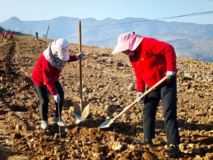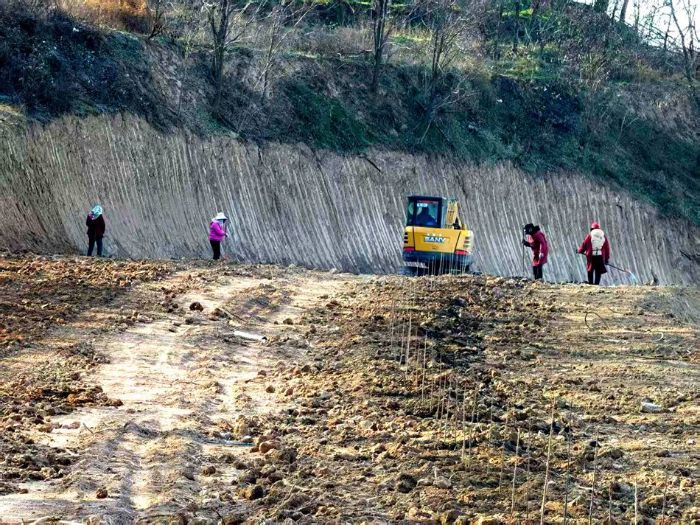 “以前果园树龄老化、果品下降,收入逐年减少。现在好了,党委政府帮我们改造果园,新树苗一栽,感觉日子越过越红火!”九峪村村民张拜红一边为新栽树苗套上保温袋,一边高兴地说。