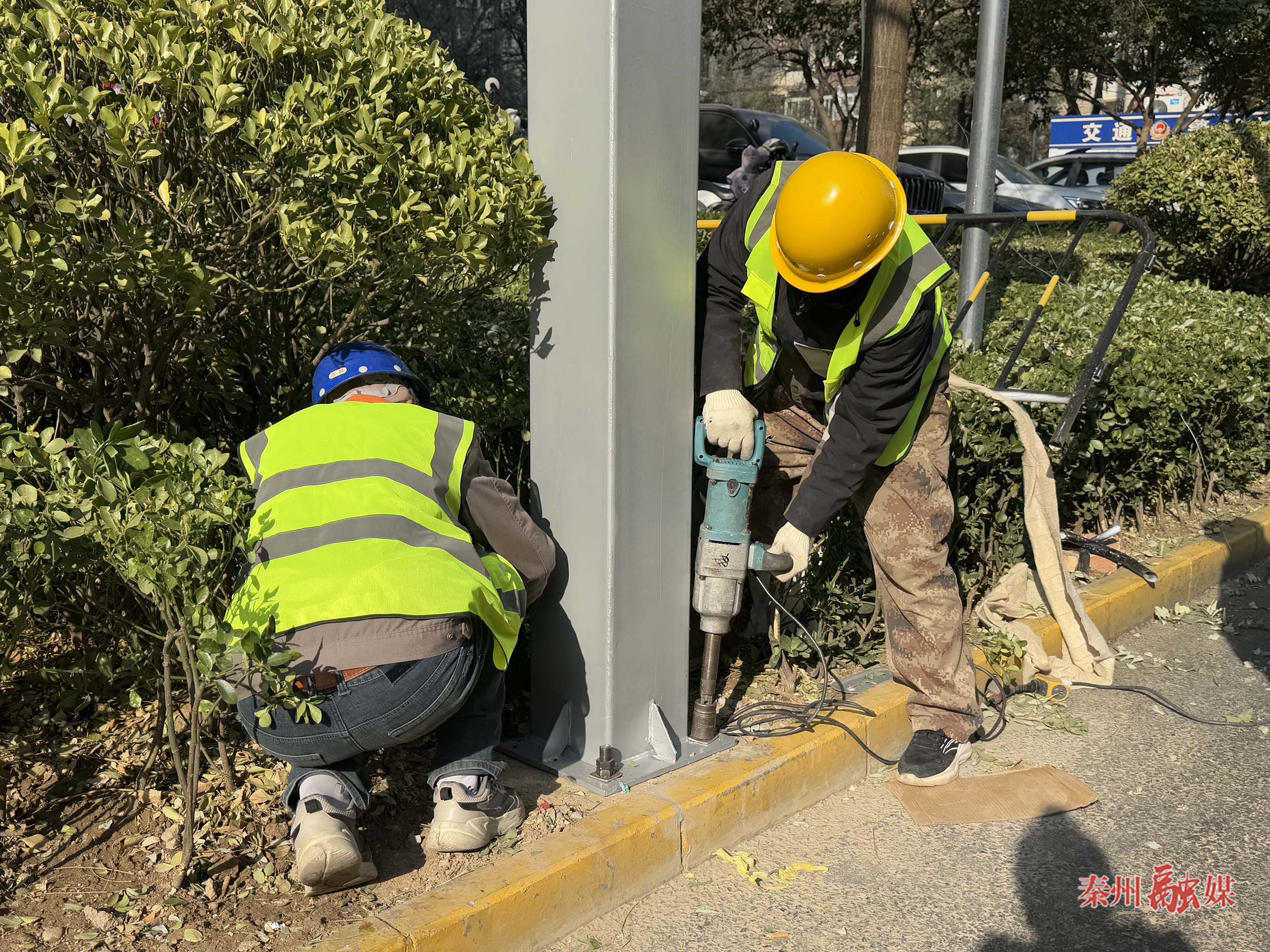 施工现场,吊臂起落、机器轰鸣,路灯更换工程正热火朝天地推进。施工人员分工明确、干劲十足,加紧作业,全力为市民打造更安全、明亮的夜间出行环境。