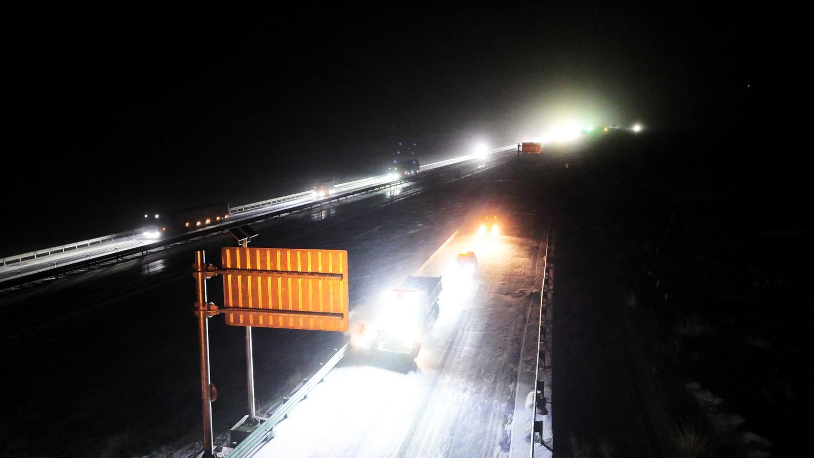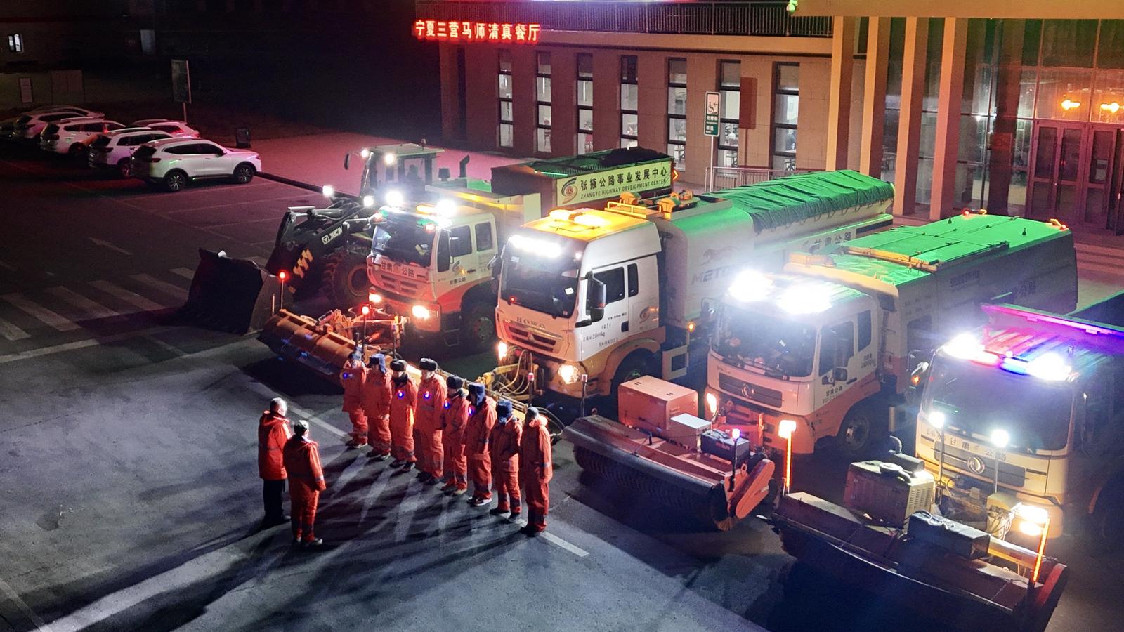 接到气象预警后,山丹公路段立即组织召开除雪保畅岗前安全技术交底会,安排职工驻扎国道312线山丹服务区应急保畅点,提前完成除雪机械检修、融雪剂装填、防滑料储备及人员编组等准备工作。