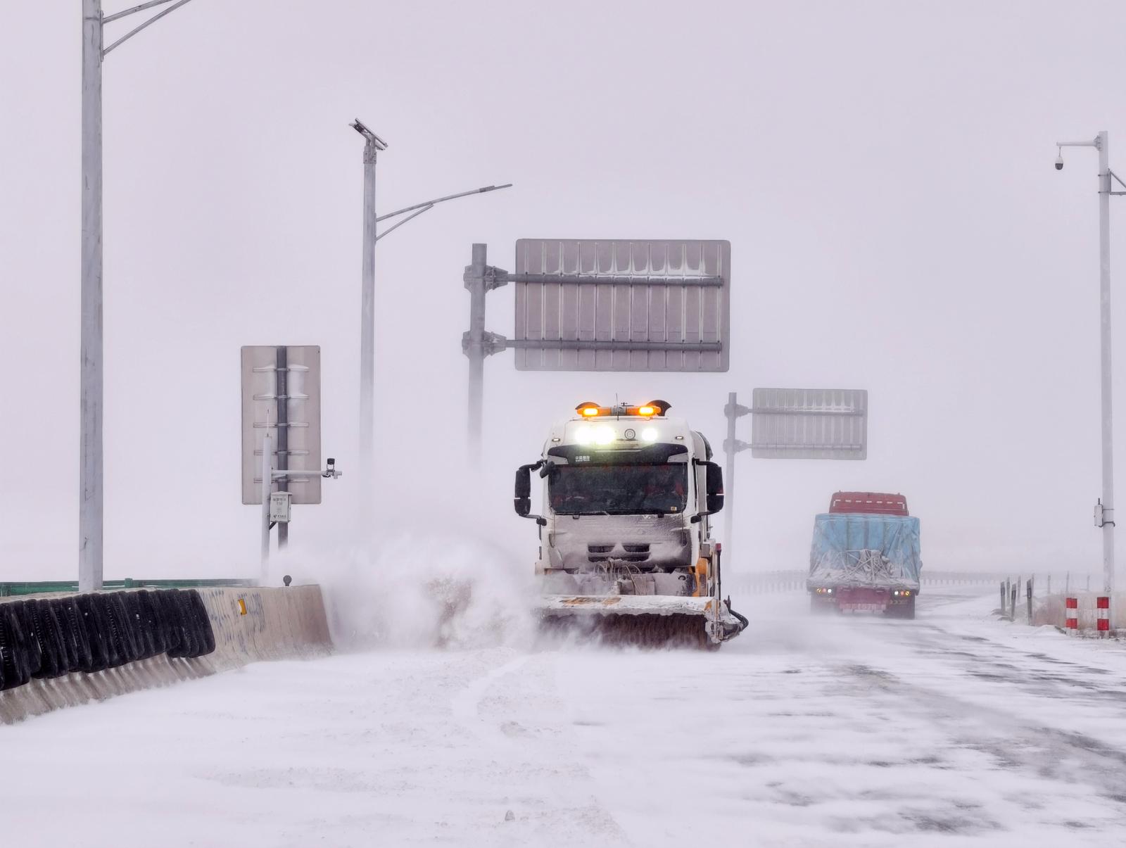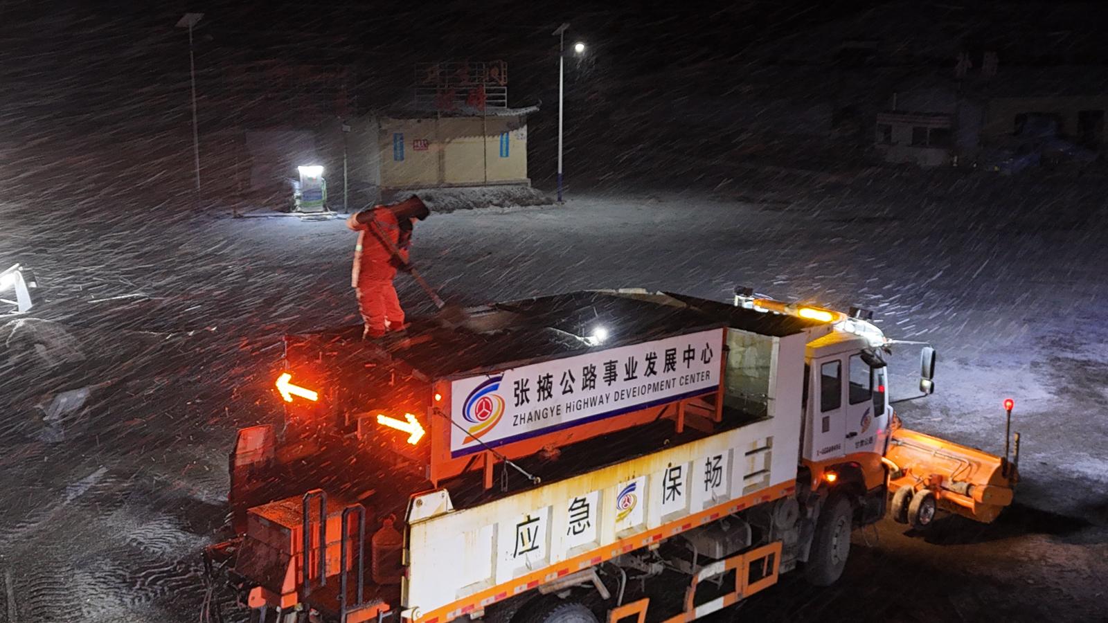 降雪后,山丹公路段严格按照除雪保畅“10个务必到位和44条工作要点”要求,科学调配除雪设备与养护人员,采取梯队作业、循环清雪的方式,重点对国道312线、省道590线国省干线,特别是长大下坡、急弯陡坡、桥面、背阴路段等易结冰、易发生事故的关键点位,进行不间断除雪、撒布融雪剂和防滑料作业,最大限度地降低冰雪灾害对道路交通的影响。